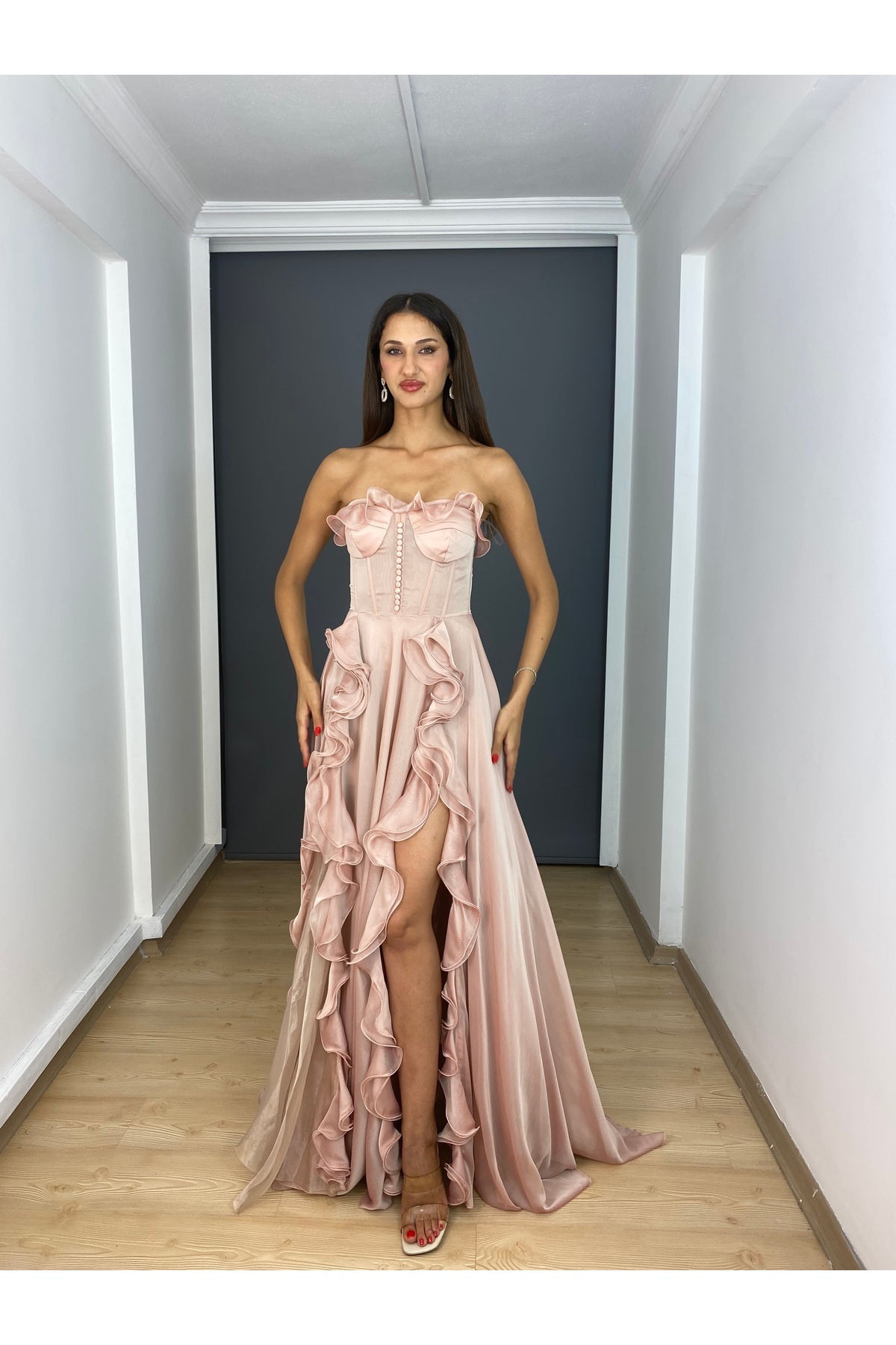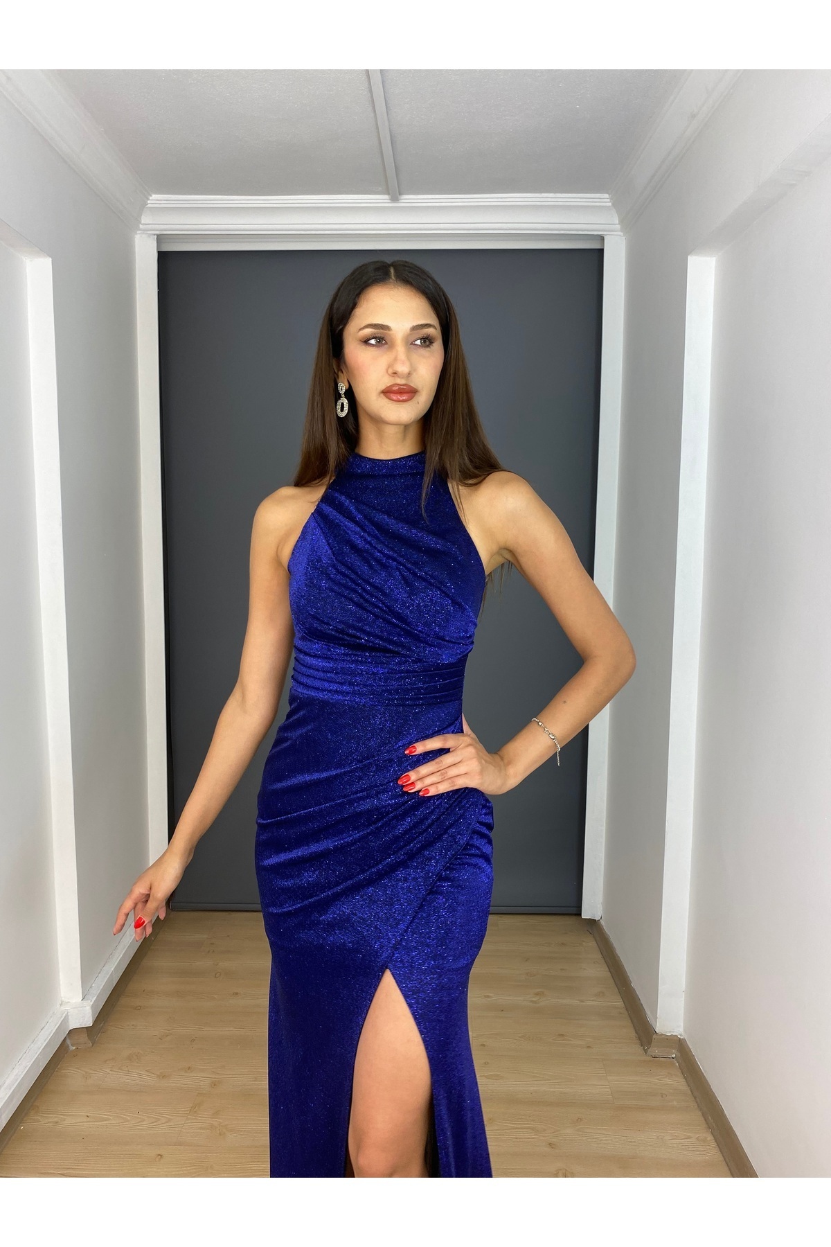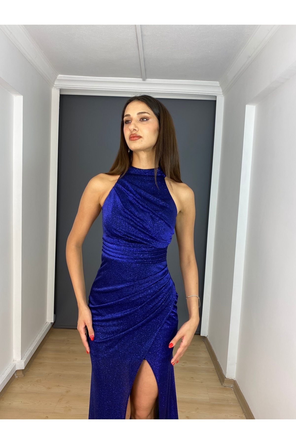Sax Stefani Yaka Simli Esnek Kumaş Yırtmaçlı Uzun Abiye Elbise Sax Stefani Yaka Simli Esnek Kumaş Yırtmaçlı Uzun Abiye Elbise g4010 48