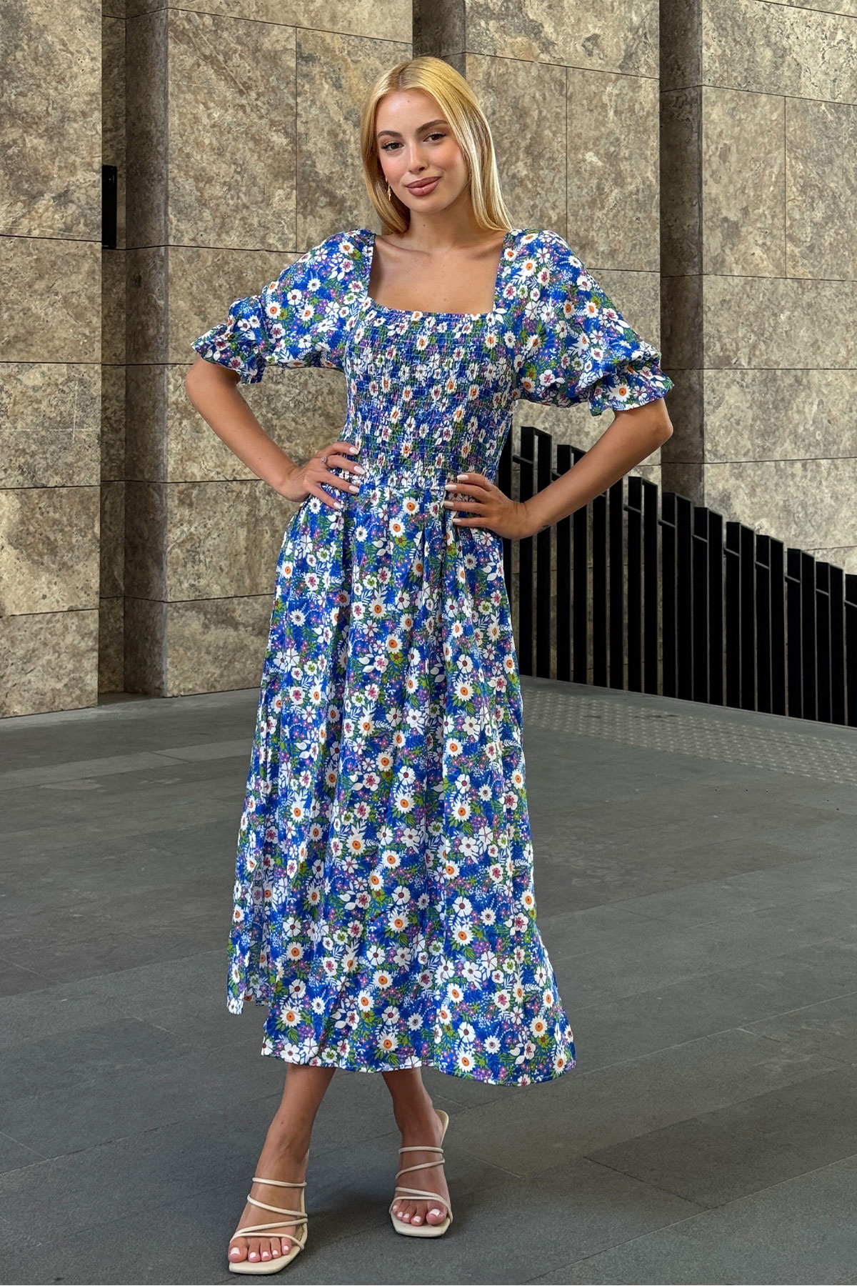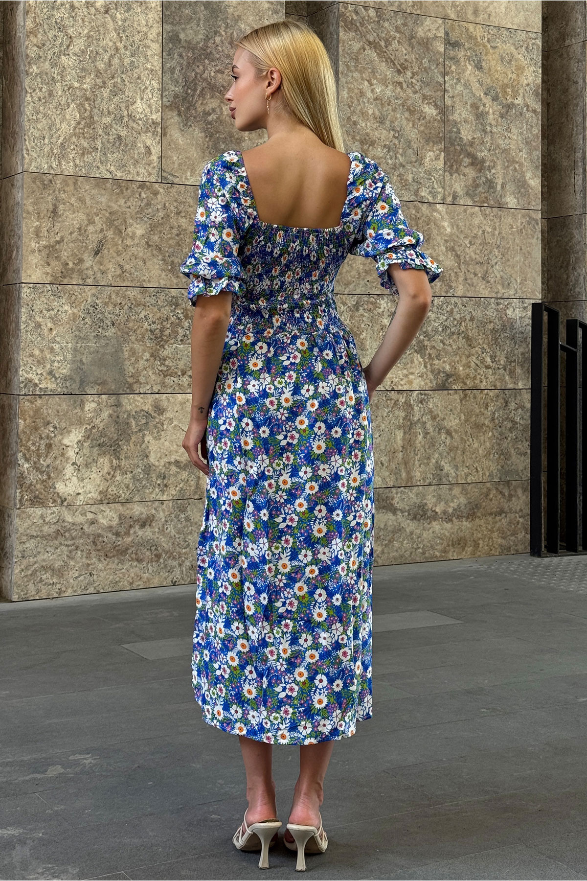 Kadın MAVİ Çiçek Desenli Madonna Yaka Smok Dikişli Elbise VS00368 Kadın MAVİ Çiçek Desenli Madonna Yaka Smok Dikişli Elbise VS00368 42