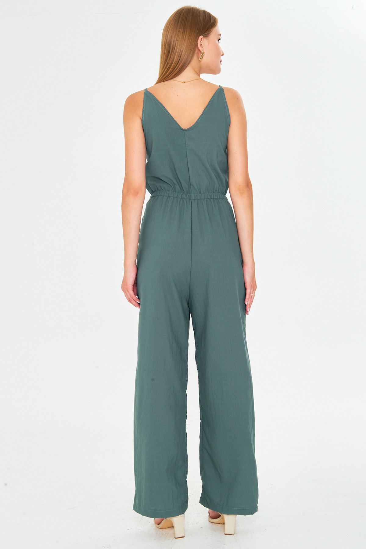 Kadın Turkuaz Ön Arka V Yaka Askılı Beli Lastikli Cepli Astarlı Tulum ARM-24Y001100 Kadın Turkuaz Ön Arka V Yaka Askılı Beli Lastikli Cepli Astarlı Tulum ARM-24Y001100 XL