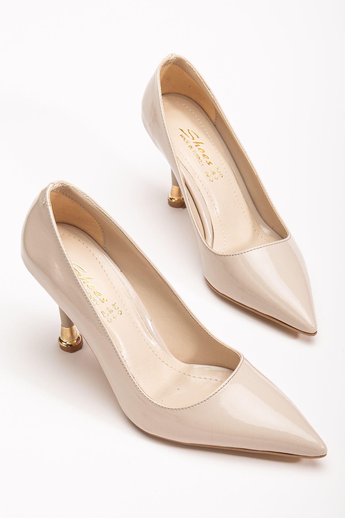 Kadın Bej Rugan Arkası Kapalı Gold Ökçe Detaylı Topuklu Ayakkabı Kadın Bej Rugan Arkası Kapalı Gold Ökçe Detaylı Topuklu Ayakkabı Ids02 40