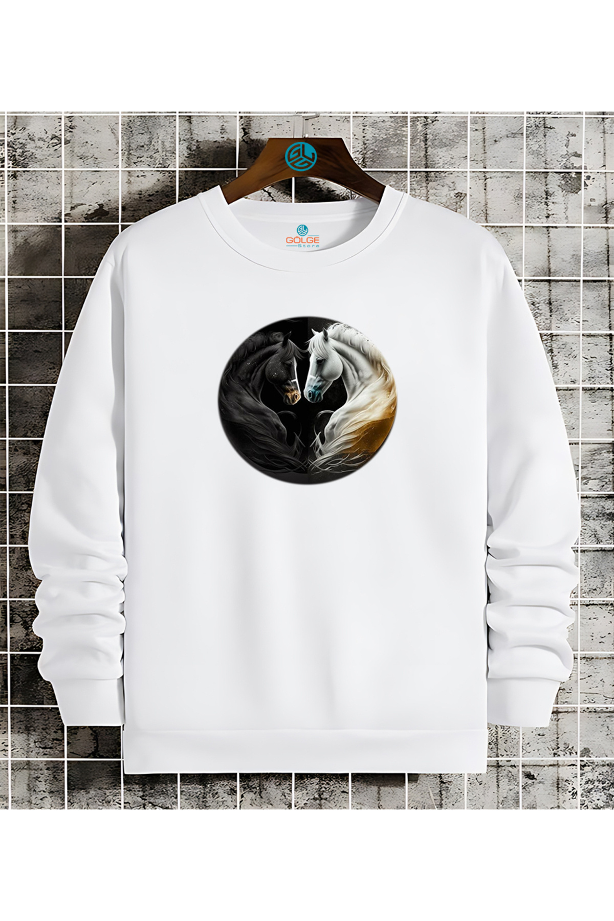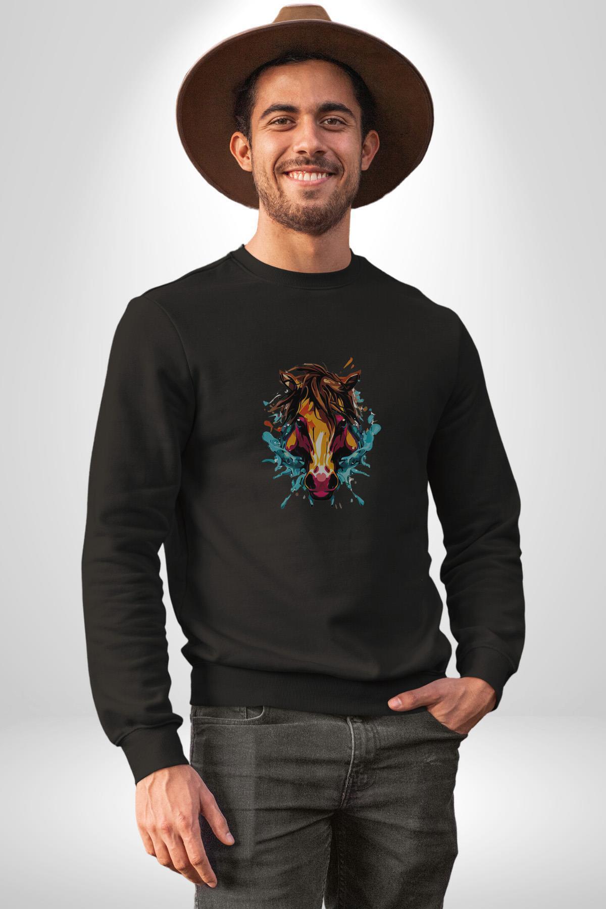 ERKEK SIFIR YAKA SWEATSHİRT ERKEK SIFIR YAKA SWEATSHİRT L-ERKEK AT BASKI SWEATSHİRT 6XL