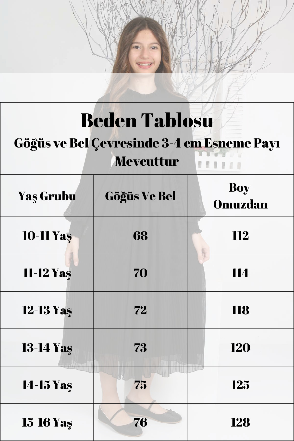 Genç Kız Uzun Boydan Pliseli Şifon Tesettür Elbise Genç Kız Uzun Boydan Pliseli Şifon Tesettür Elbise ELB-1135 15-16 Yaş