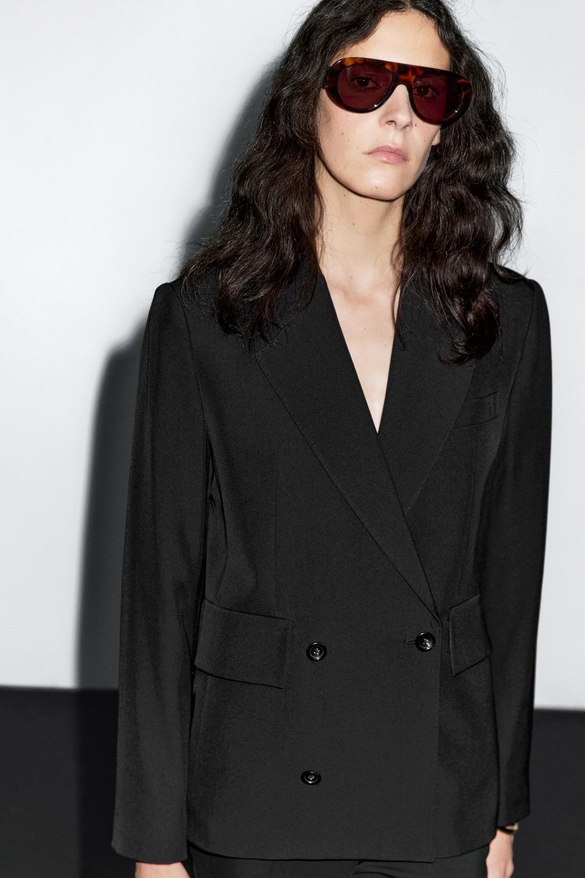 Crop yün karışımlı kruvaze blazer Crop yün karışımlı kruvaze blazer 00110779206034682 42