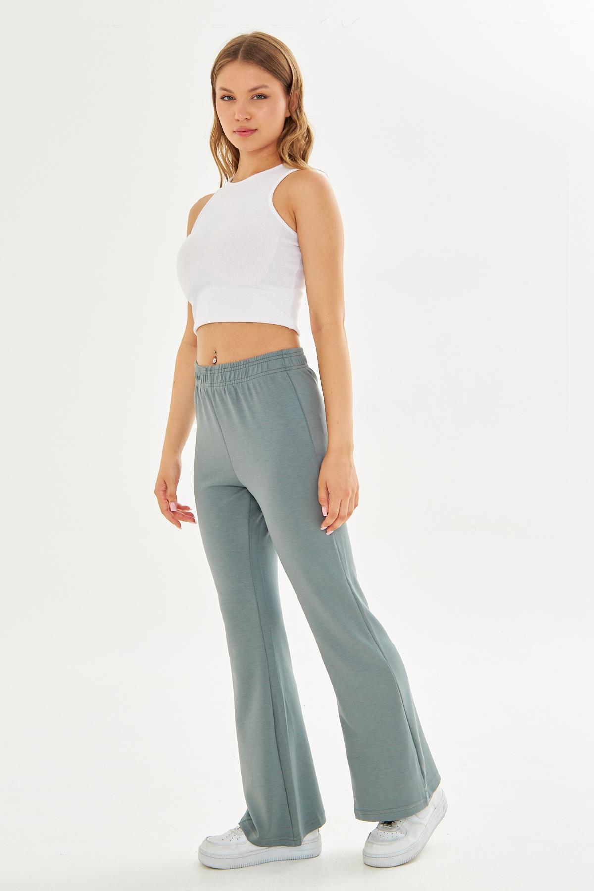 Kadın Modal Kumaş Yüksek Bel Geniş Paça Eşofman Altı Yeşil 8102-Y Kadın Modal Kumaş Yüksek Bel Geniş Paça Eşofman Altı Yeşil 8102-Y 2XL