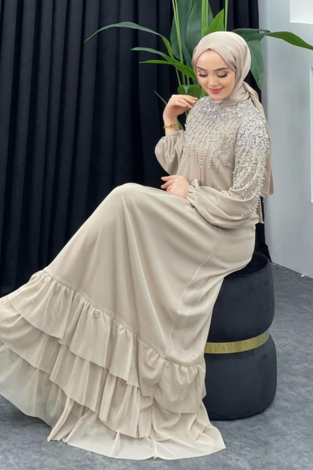TAŞ İŞLEMELİ ETEĞİ FIRFIRLI TÜL ELBİSE TAŞ İŞLEMELİ ETEĞİ FIRFIRLI TÜL ELBİSE TYC8F5A4D4BACDF028D7C2500 46