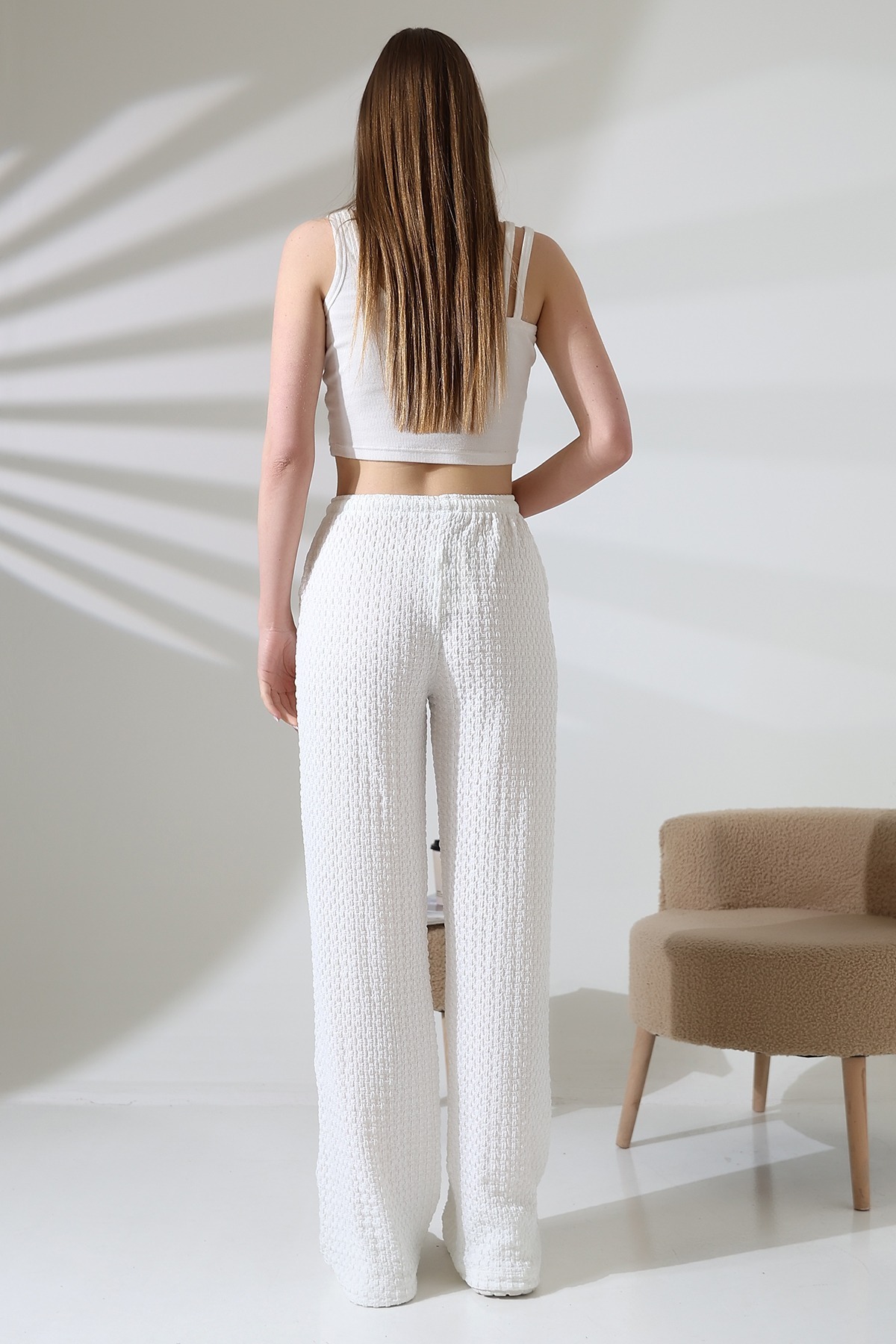 JAKARLI KUMAŞ İNCE BEL LASTİKLİ CEPLİ SALAŞ BOL PAÇA PANTOLON JAKARLI KUMAŞ İNCE BEL LASTİKLİ CEPLİ SALAŞ BOL PAÇA PANTOLON TY-0486-21959 XL