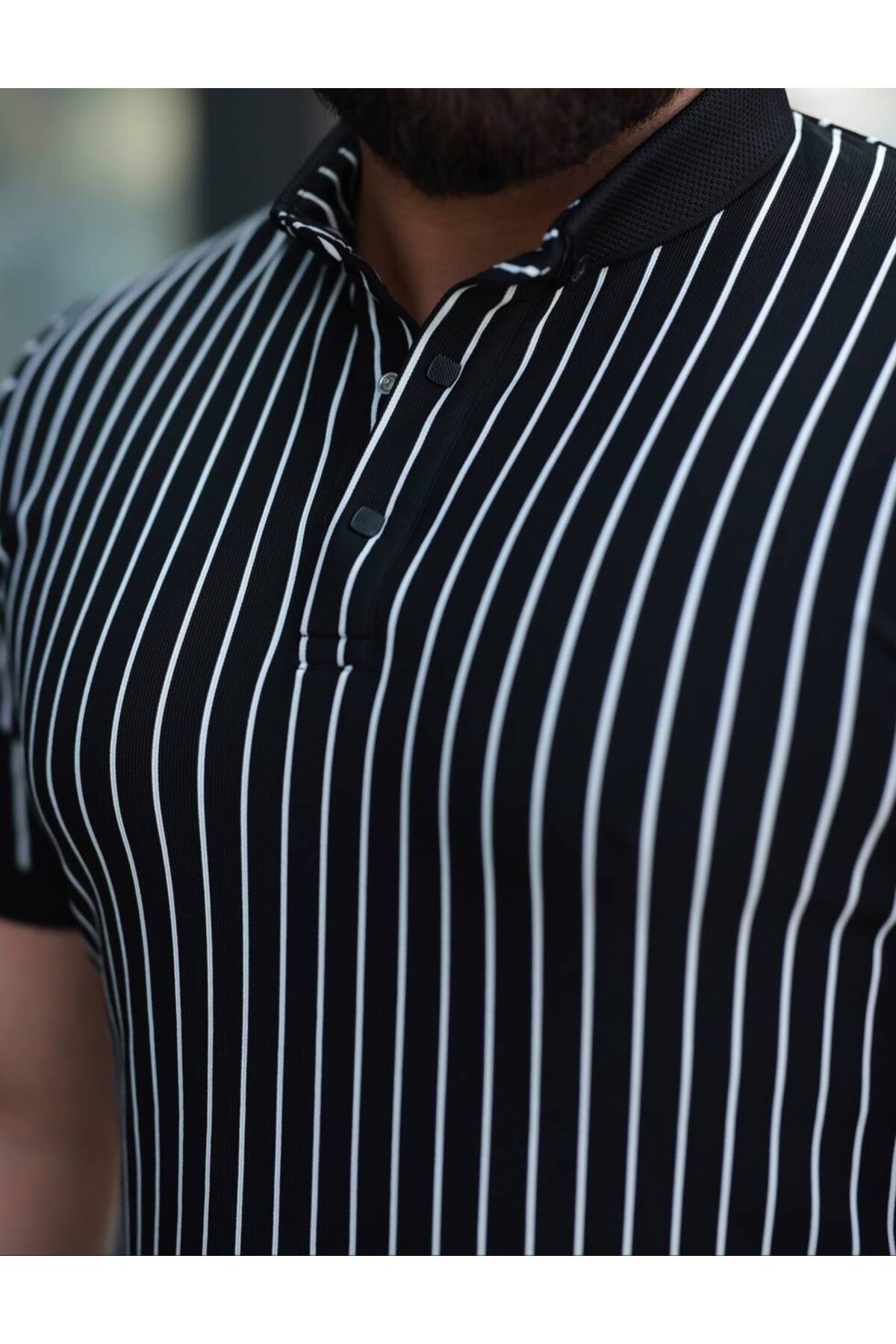 Slim Fit Polo Yaka Dikey Çizgili Erkek Tişört – Polyester Kumaş Slim Fit Polo Yaka Dikey Çizgili Erkek Tişört – Polyester Kumaş 149 2XL