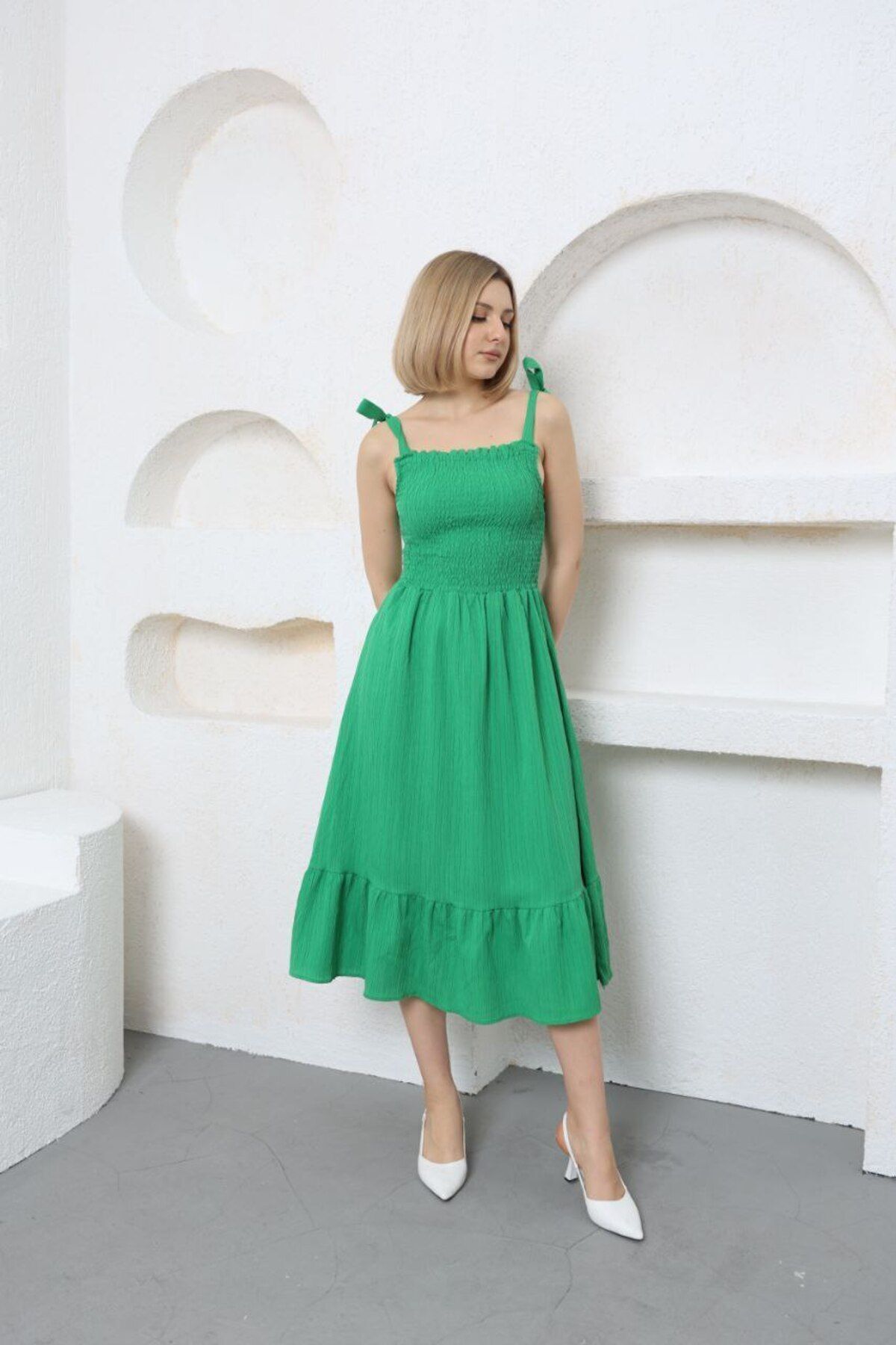 Viskon Kumaş Çizgili Elbise-Saks Viskon Kumaş Çizgili Elbise-Saks 25VL051-03-23 M