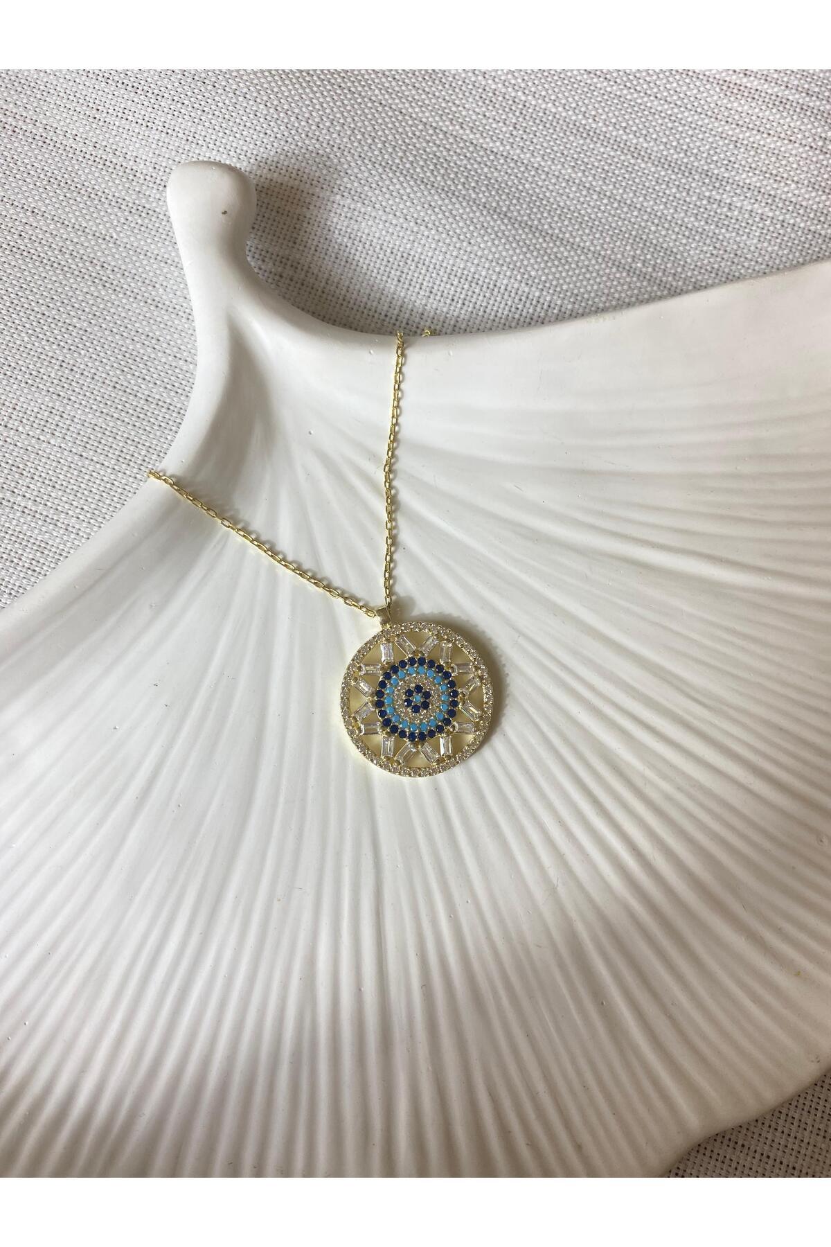 925 Ayar Gümüş Nazar Boncuklu Güneş Kolye 925 Ayar Gümüş Nazar Boncuklu Güneş Kolye KJKL0102 Battal Standart