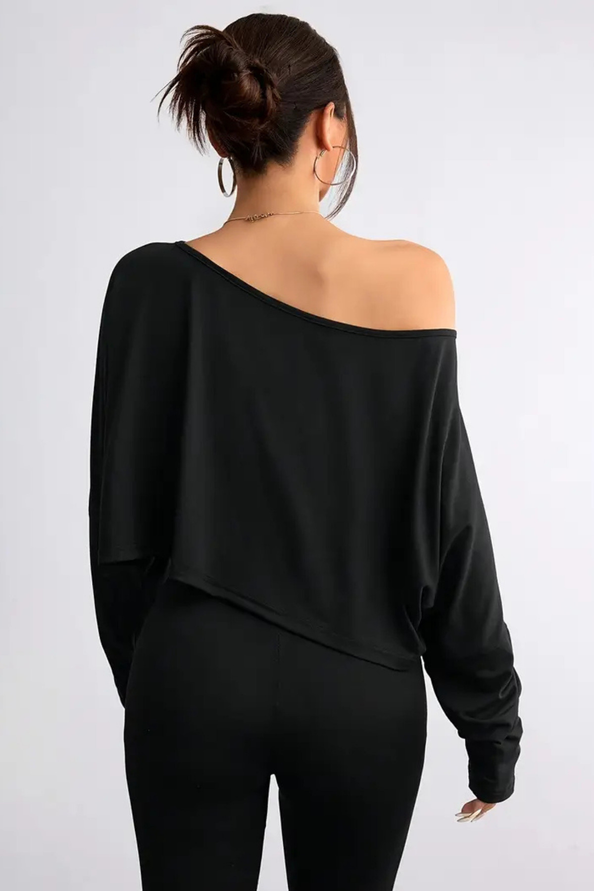 Siyah Kadın Düşük Omuz Kayık Yaka Oversize Uzun Kollu Crop T-Shirt Siyah Kadın Düşük Omuz Kayık Yaka Oversize Uzun Kollu Crop T-Shirt UZNKDNTS030 L/XL