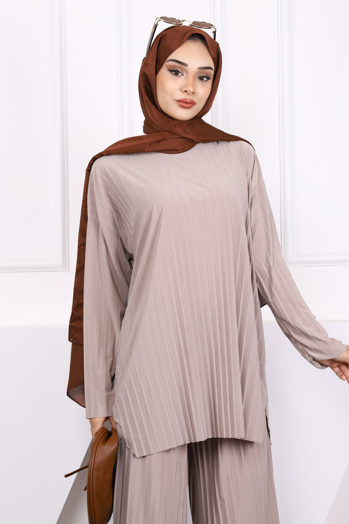 Açık Vizon Piliseli Sandy Tunik Pantolon Takım Açık Vizon Piliseli Sandy Tunik Pantolon Takım IMJ005744 XL-XXL