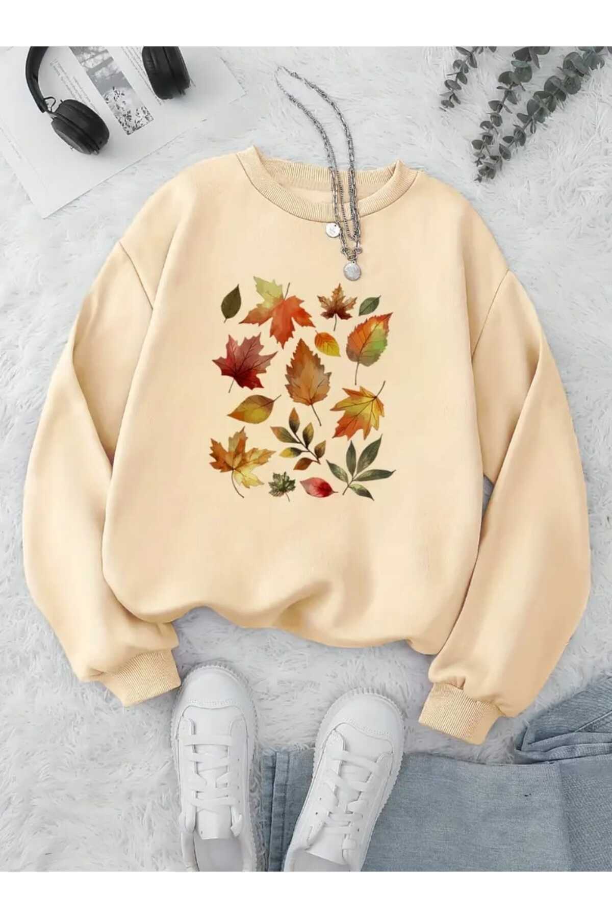 Mor Menekşe Baskılı Bisiklet Yaka Bej Sweatshirt Mor Menekşe Baskılı Bisiklet Yaka Bej Sweatshirt B.s134 2XL