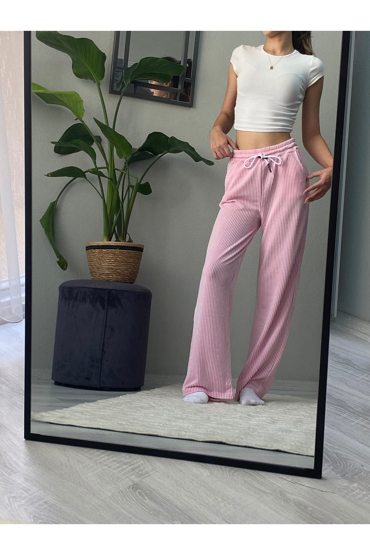 Yüssbutik su yolu pembe beyaz çizgili pantolon Yüssbutik su yolu pembe beyaz çizgili pantolon supembe01 XL