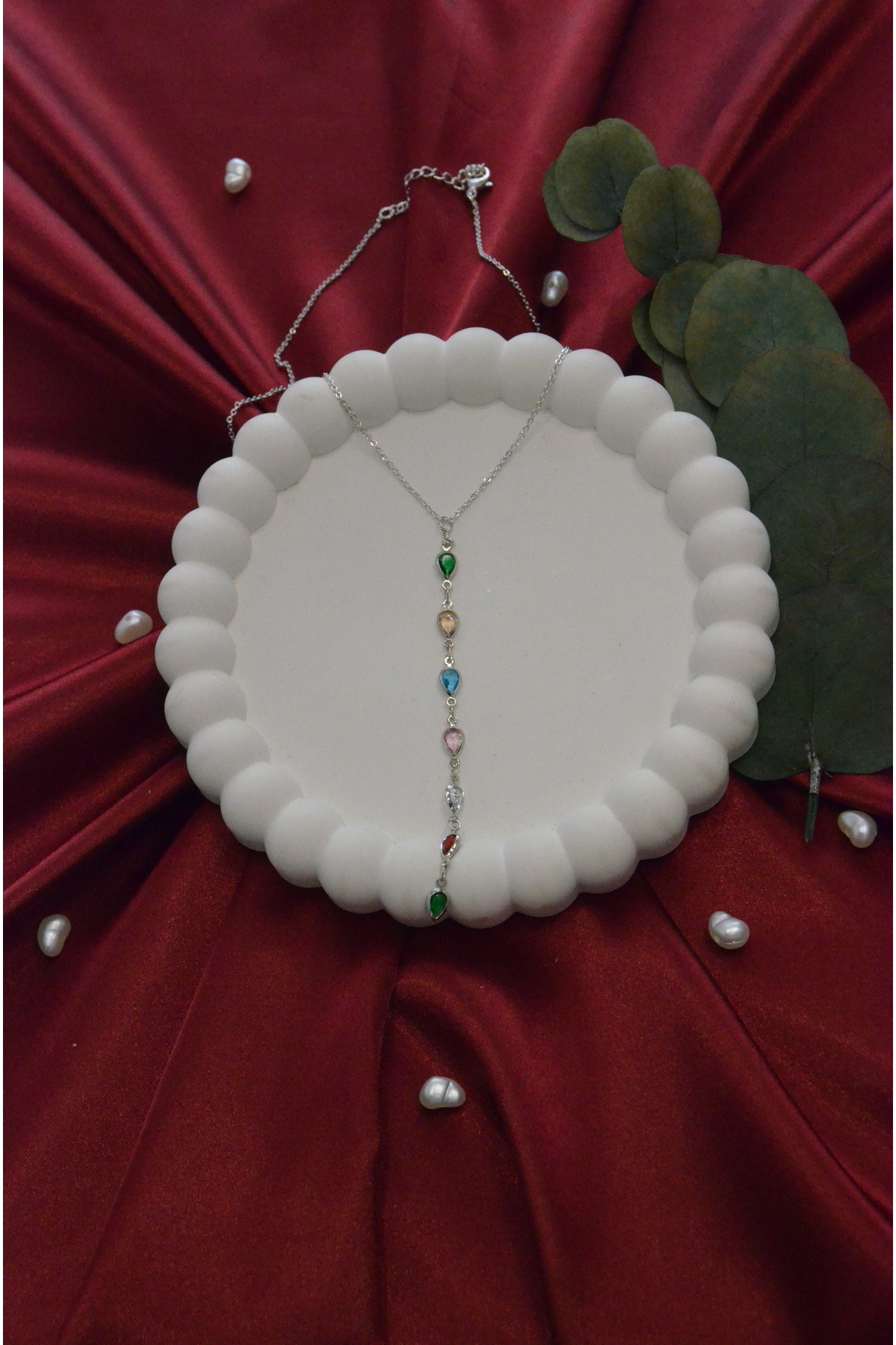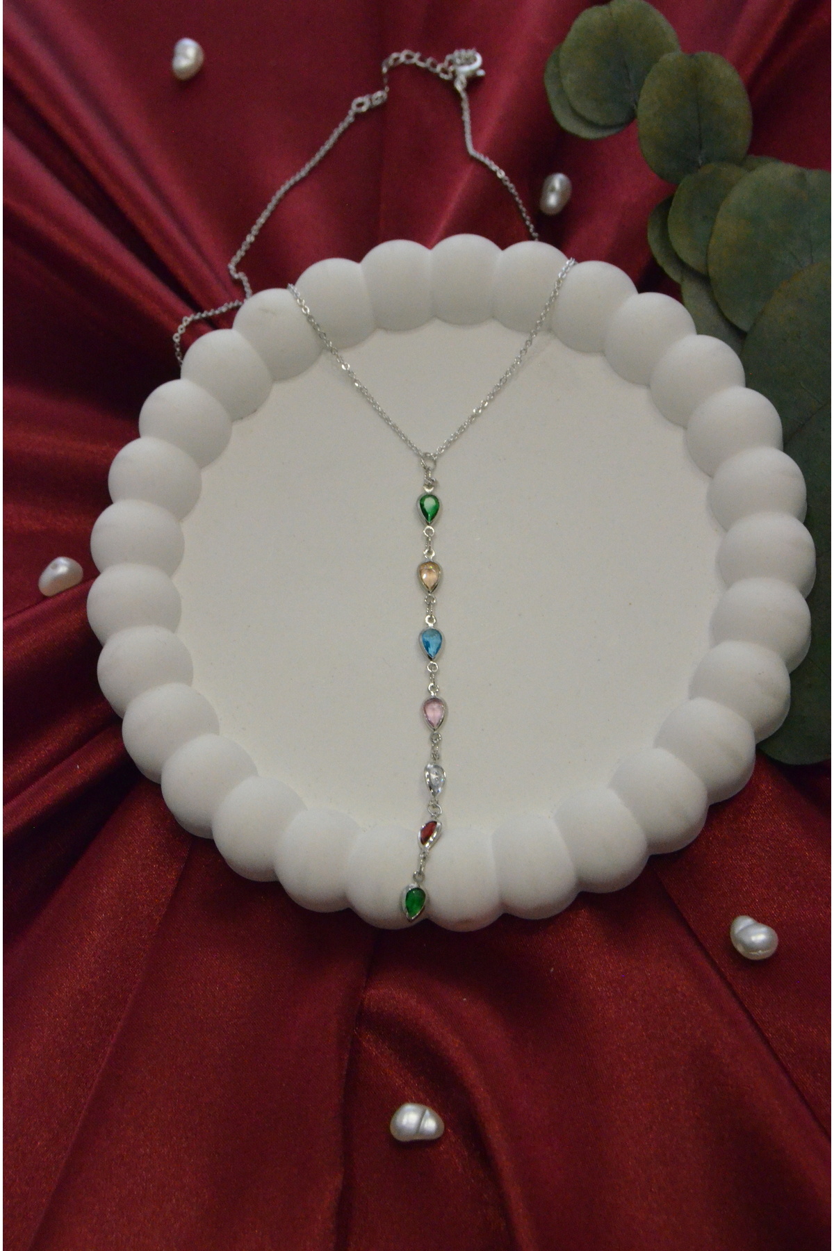 Renkli Damla Taşlı Y Model Gümüş Kadın Çelik Kolye – Ayarlanabilir & Kararma Yapmaz Renkli Damla Taşlı Y Model Gümüş Kadın Çelik Kolye – Ayarlanabilir & Kararma Yapmaz KOL0014 45 cm