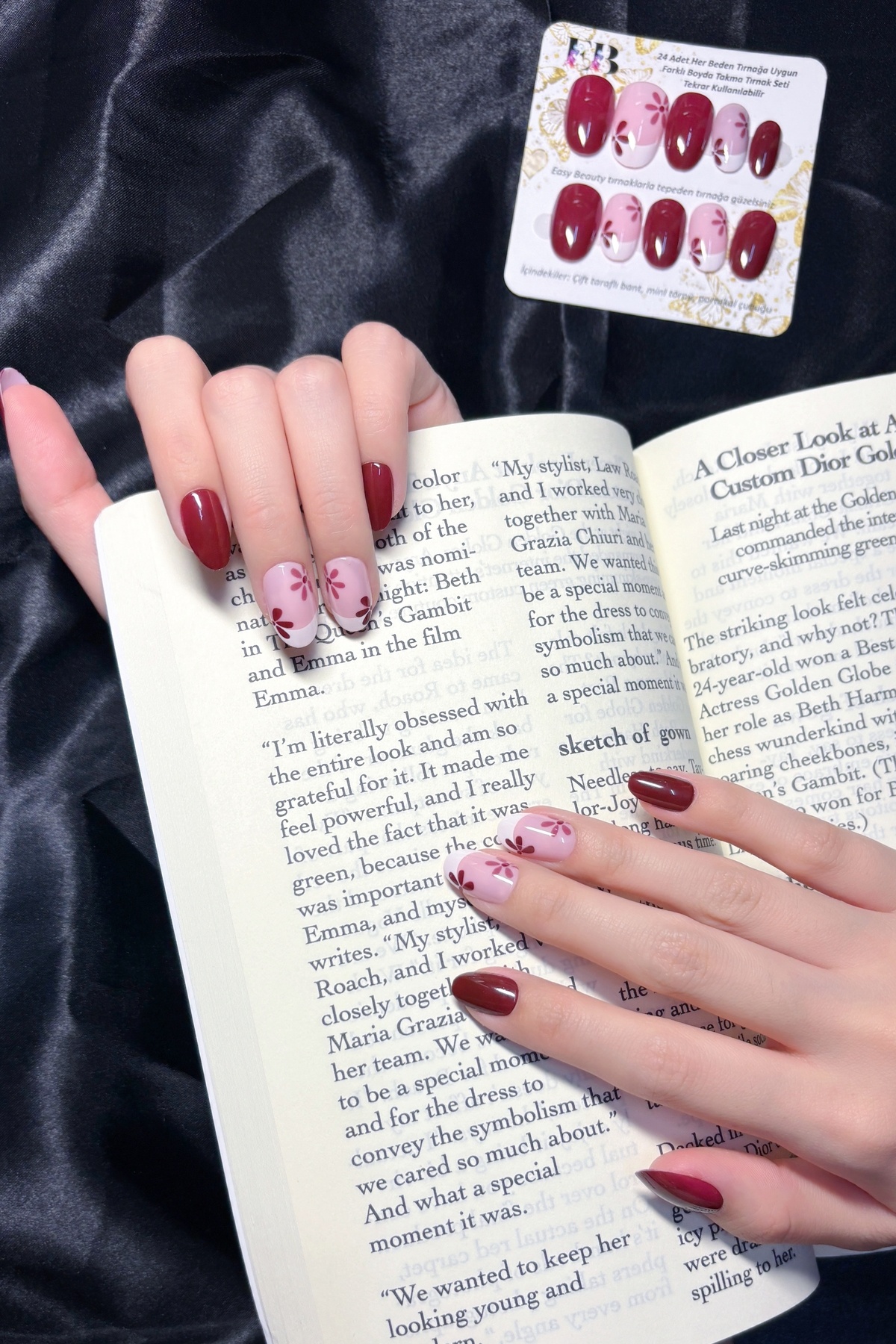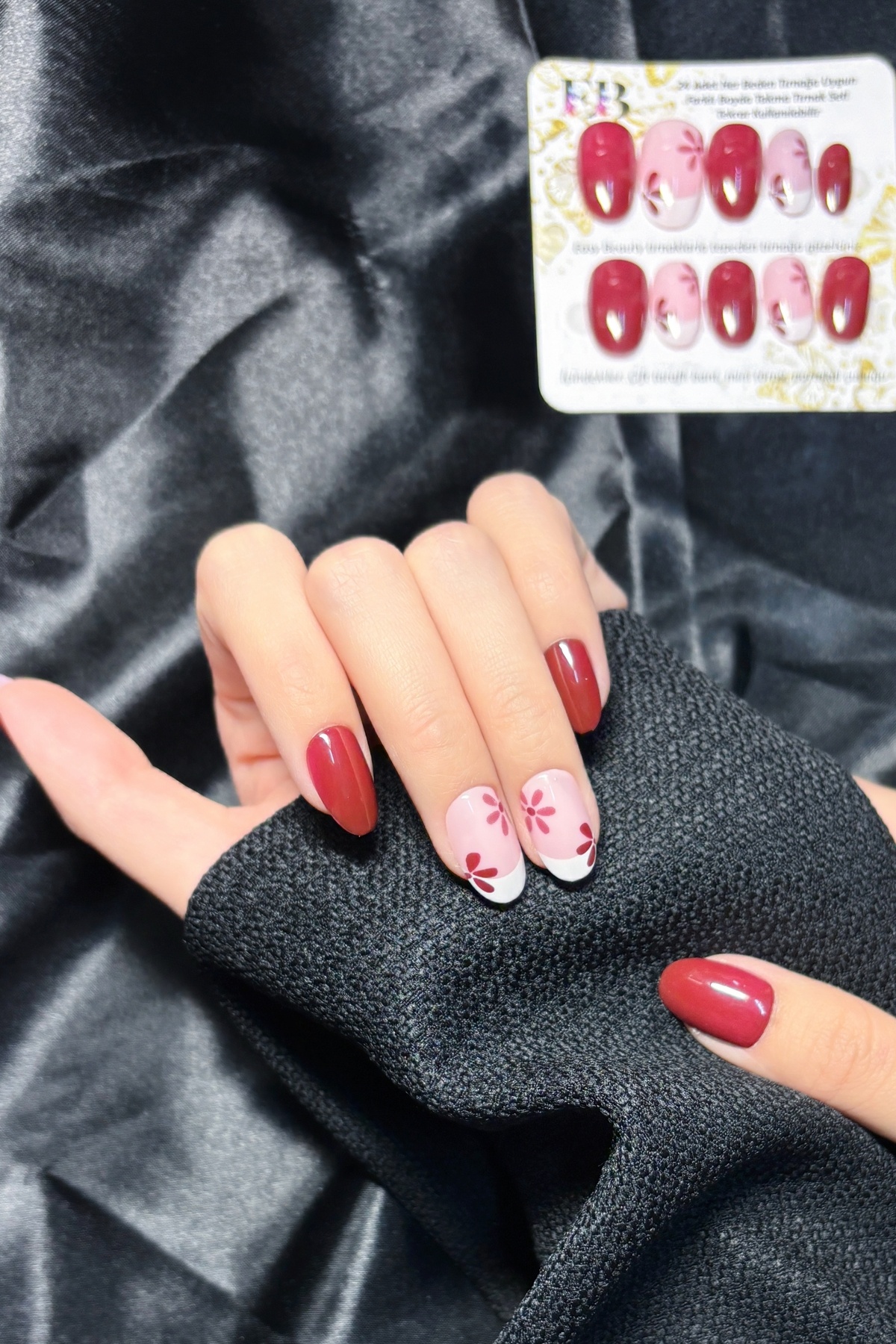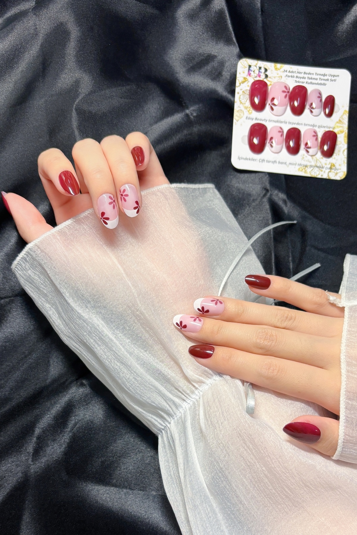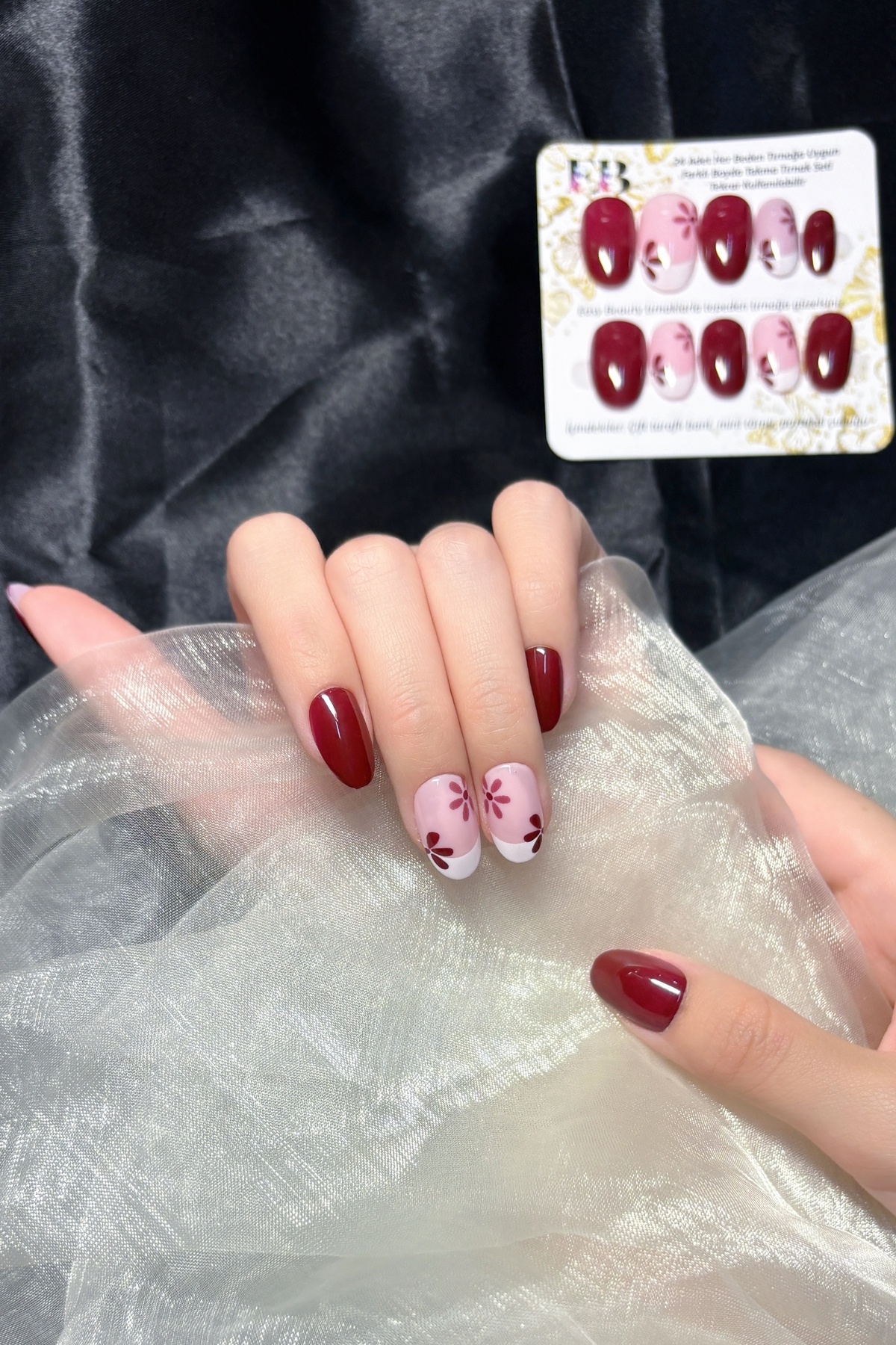 Kısa Bordo French Takma Tırnak 24 Adet Takma Tırnak Seti W1771 Kısa Bordo French Takma Tırnak 24 Adet Takma Tırnak Seti W1771 CESITLIMODEL تک سایز