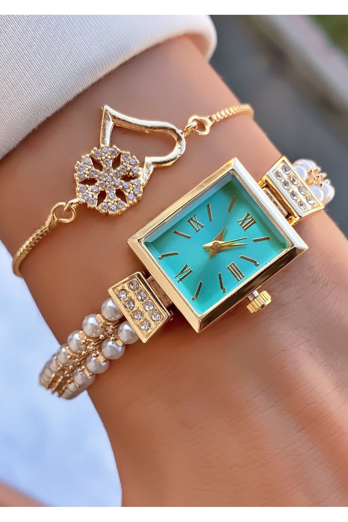 Zarif İnci Detaylı Kadın Kol Saati ve Güneş Figürlü Altın Bileklik Seti Zarif İnci Detaylı Kadın Kol Saati ve Güneş Figürlü Altın Bileklik Seti 0020MCS657 تک سایز