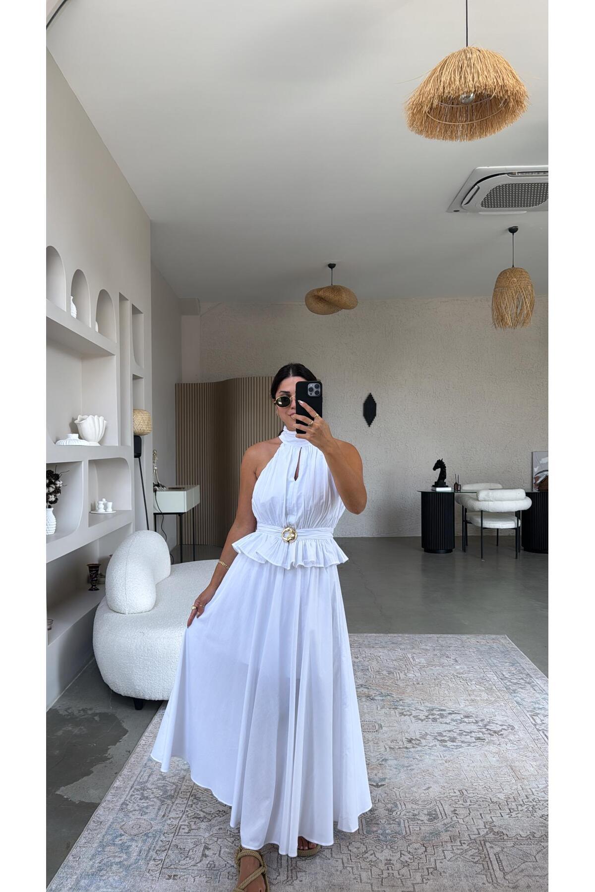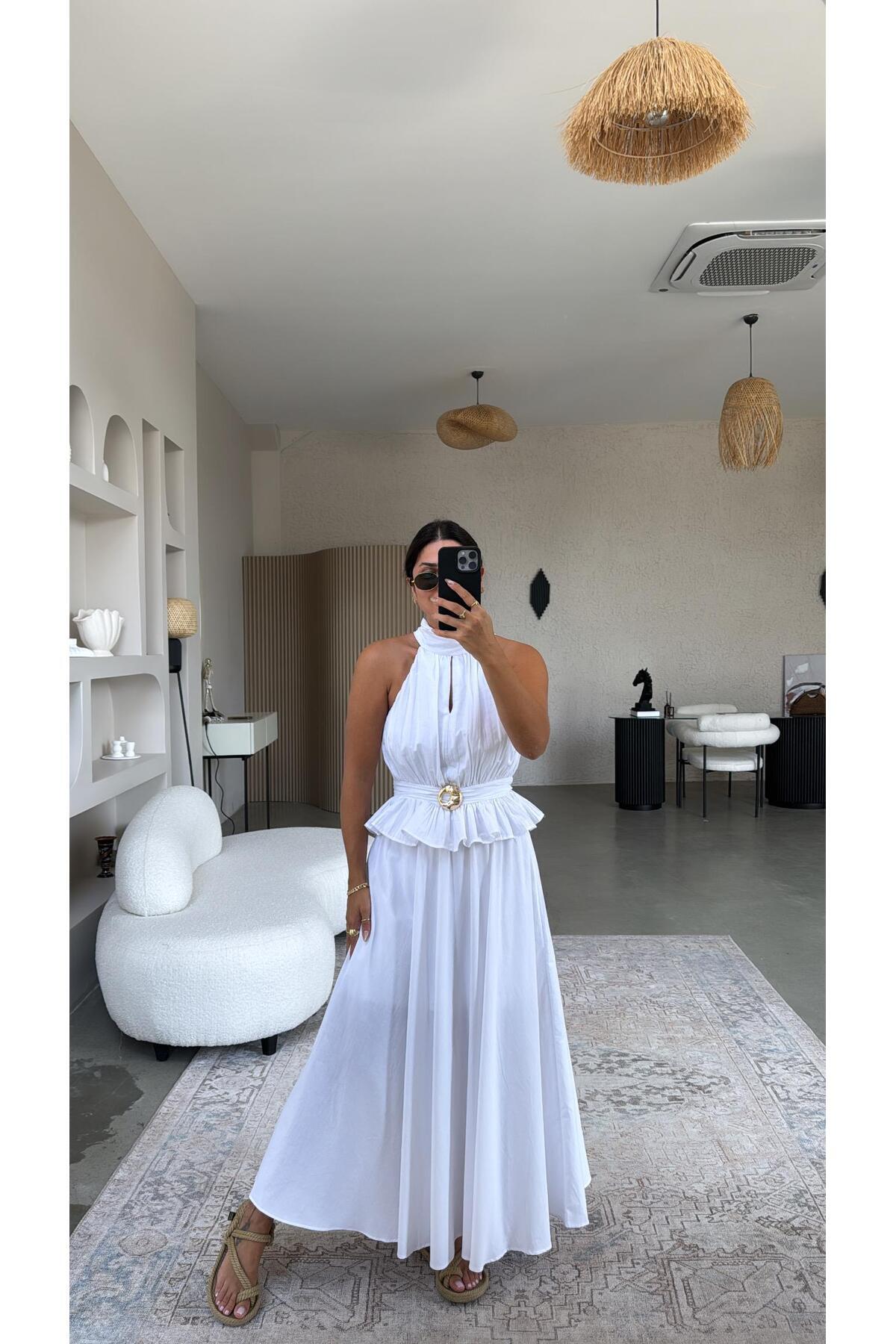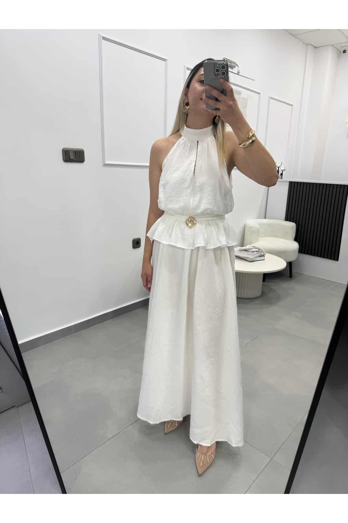 Beyaz Premium Gold Detaylı Etek Bluz Takım Beyaz Premium Gold Detaylı Etek Bluz Takım TX5B73BAD84700 XL