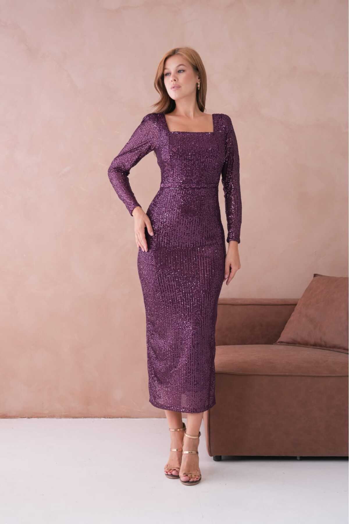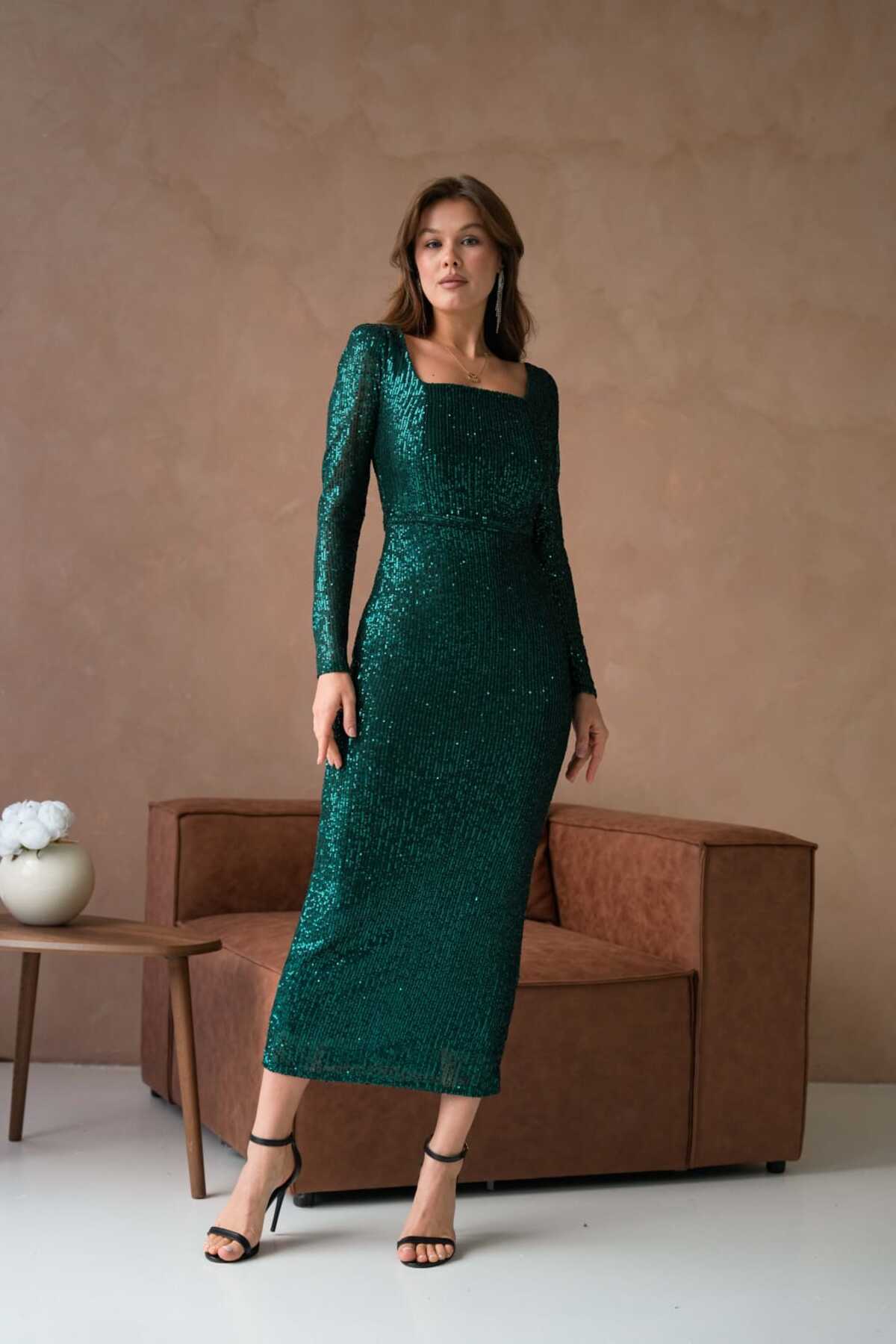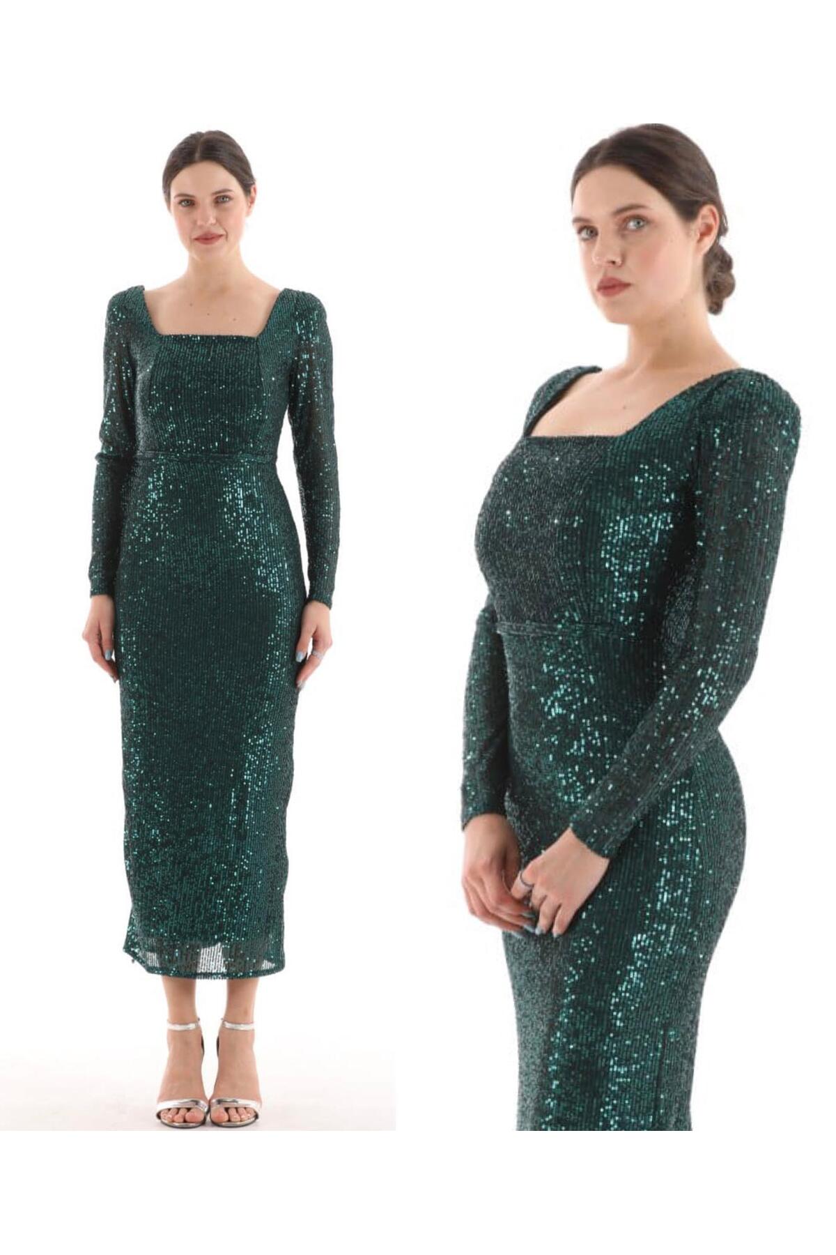 Kare Yaka Pul Payetli Abiye Elbise Kare Yaka Pul Payetli Abiye Elbise 224795 50