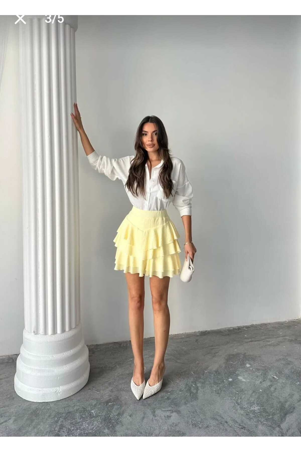 Kadın Katlı Basic Esnek Dar Sarı Mini Kloş Etek Kadın Katlı Basic Esnek Dar Sarı Mini Kloş Etek 135-5YB1537ŞET L