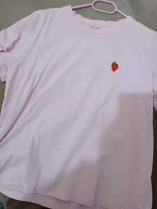 Kadın Çilek Nakışlı Bisiklet Yaka Pembe Bol Tişört Kadın Çilek Nakışlı Bisiklet Yaka Pembe Bol Tişört 155-5YB10394TSH L