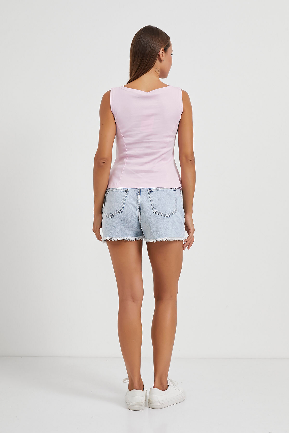 Kadın Kayık Yaka Kolsuz Yazlık Günlük Pembe Bluz Kadın Kayık Yaka Kolsuz Yazlık Günlük Pembe Bluz 155-5YB3424BLZ L