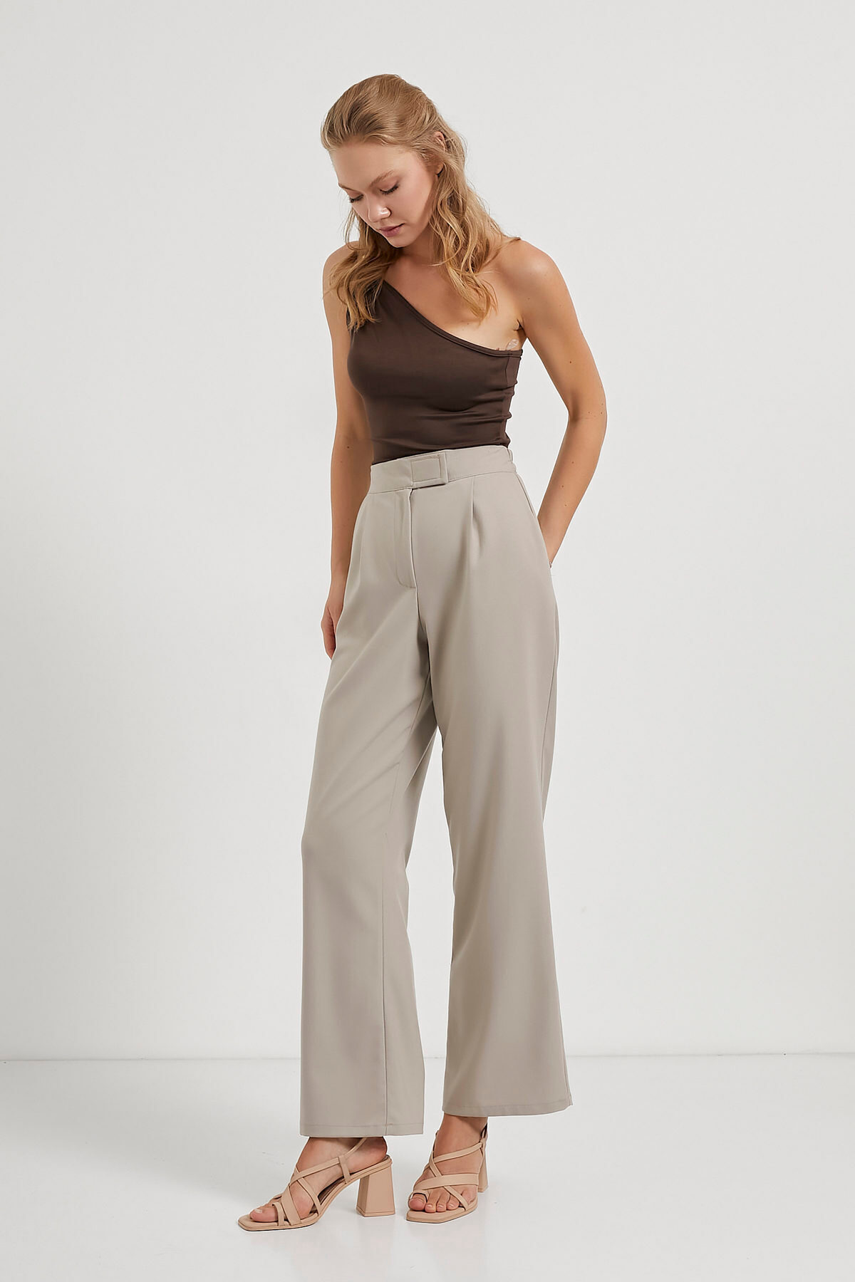 Kadın Bol Paça Cırt Kapama Krem Palazzo Pantolon Kadın Bol Paça Cırt Kapama Krem Palazzo Pantolon 463-5YB6642PTL XL