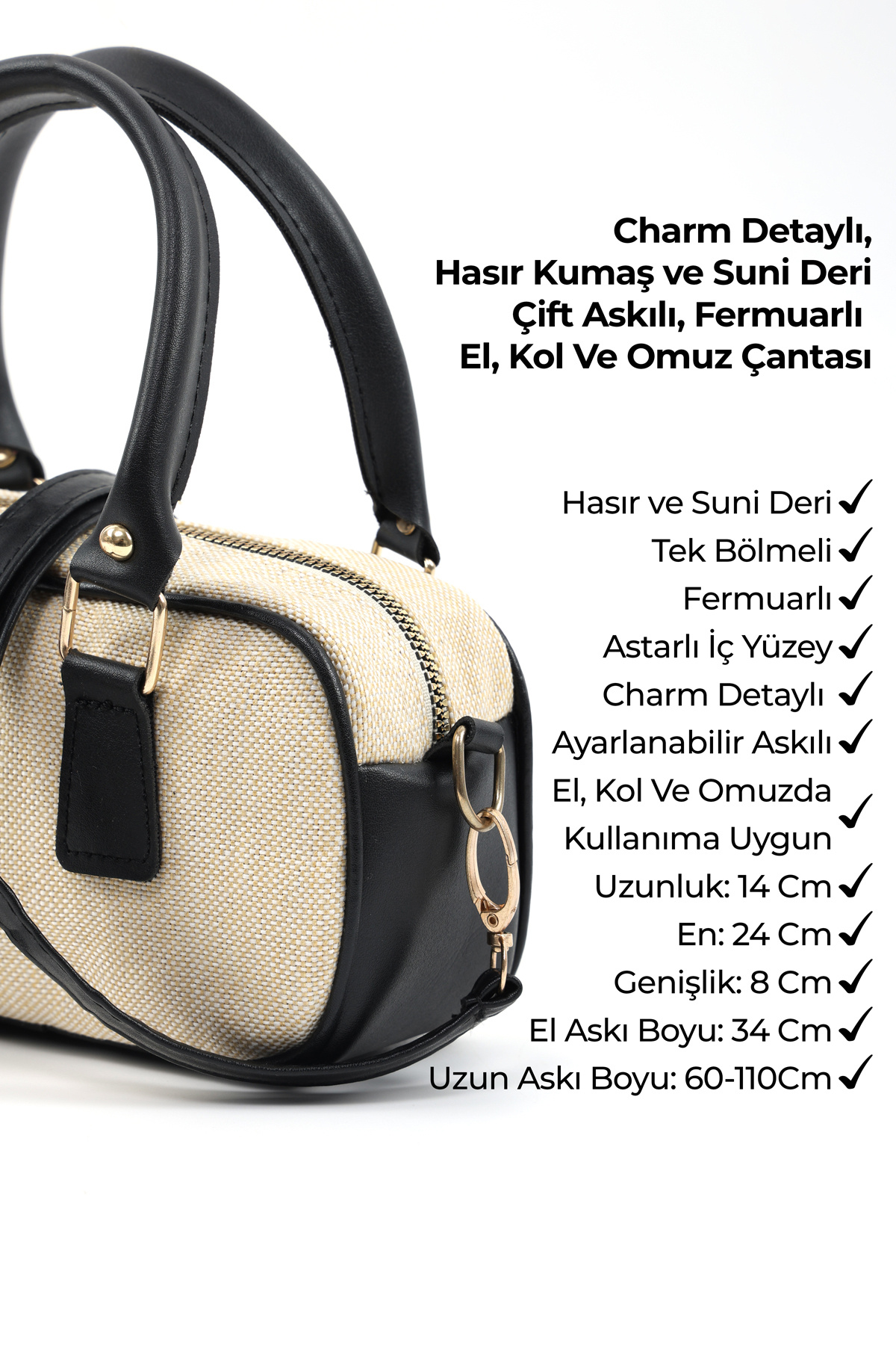 Hasır / Siyah Shk207 Suni Deri Charm Detaylı Fermuarlı Ayarlanabilir Askılı El, Kol ve Omuz Çantası Hasır / Siyah Shk207 Suni Deri Charm Detaylı Fermuarlı Ayarlanabilir Askılı El, Kol ve Omuz Çantası S225-00239 تک سایز