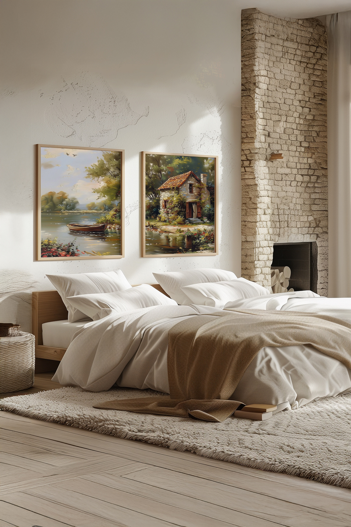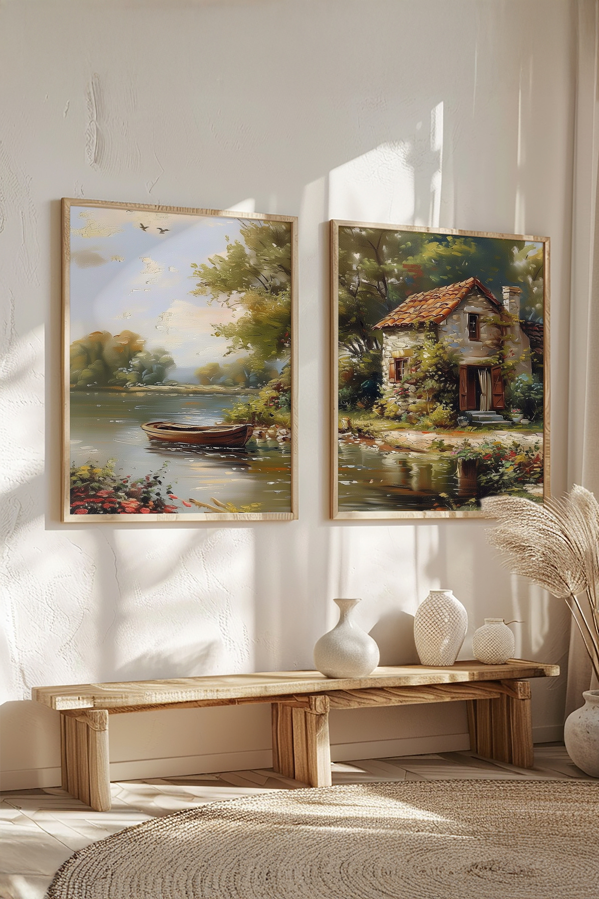 Yağlı boya efektli ahşap çerçeveli manzara tablo 2'li tablo seti Yuna92 Yağlı boya efektli ahşap çerçeveli manzara tablo 2'li tablo seti Yuna92 yuna92 50 x 70