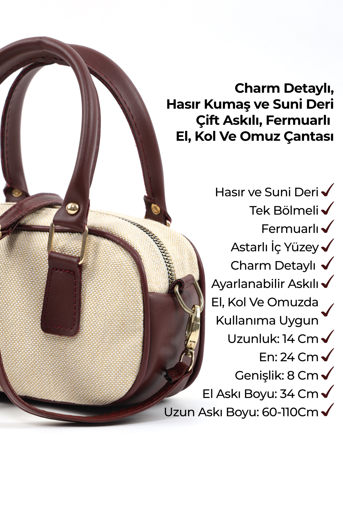 Hasır / Bordo Shk207 Suni Deri Charm Detaylı Fermuarlı Ayarlanabilir Askılı El, Kol ve Omuz Çantası Hasır / Bordo Shk207 Suni Deri Charm Detaylı Fermuarlı Ayarlanabilir Askılı El, Kol ve Omuz Çantası S225-00239 تک سایز