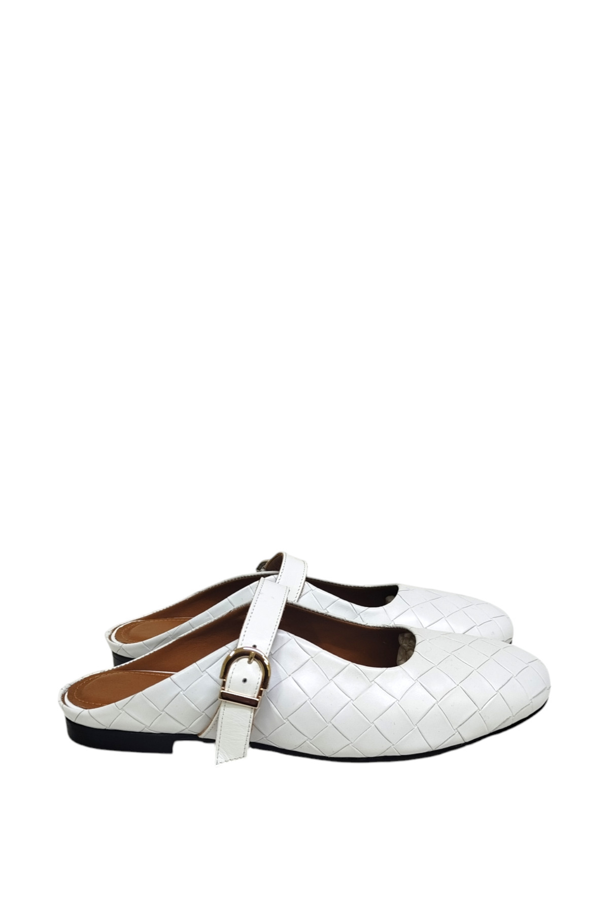 Hakiki Deri Beyaz Baskı Kadın Babet Ayakkabı Yuvarlak Burun Arkası Açık Bantlı Tokalı DRY-1814 Hakiki Deri Beyaz Baskı Kadın Babet Ayakkabı Yuvarlak Burun Arkası Açık Bantlı Tokalı DRY-1814 42