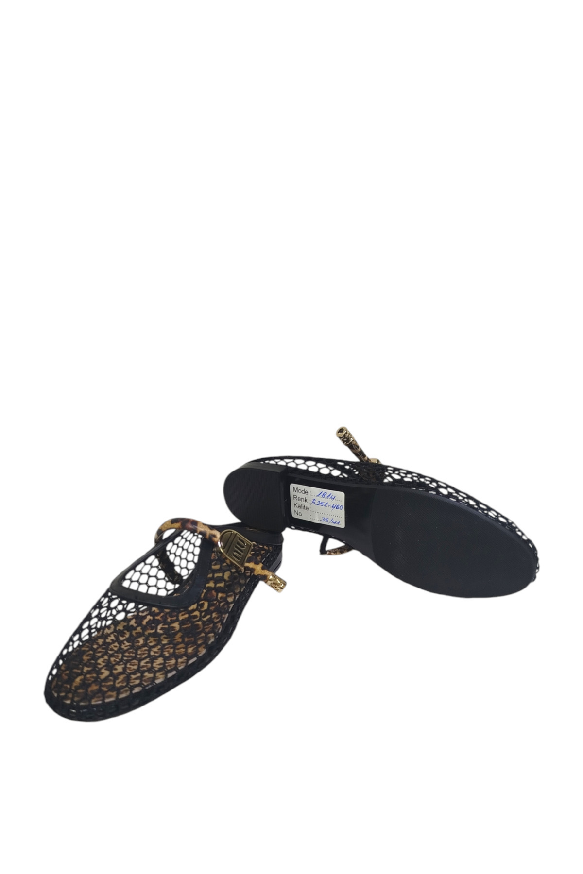 Hakiki Deri Siyah File Leopar Kadın Babet Ayakkabı Yuvarlak Burun Arkası Açık Bantlı Tokalı DRY-1814 Hakiki Deri Siyah File Leopar Kadın Babet Ayakkabı Yuvarlak Burun Arkası Açık Bantlı Tokalı DRY-1814 42
