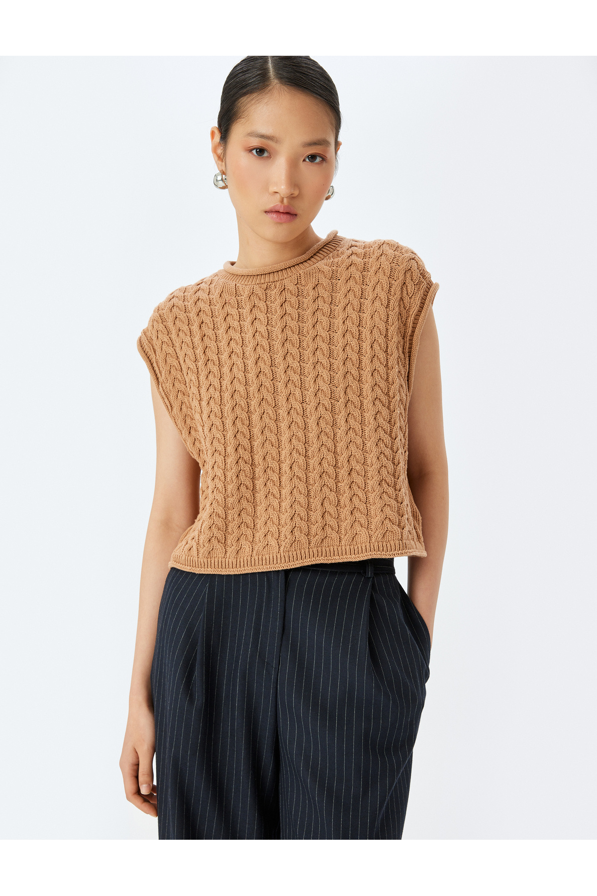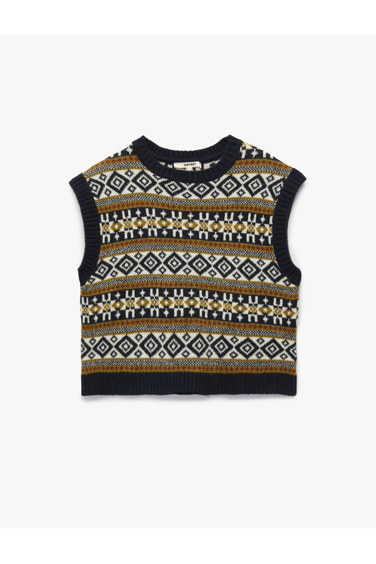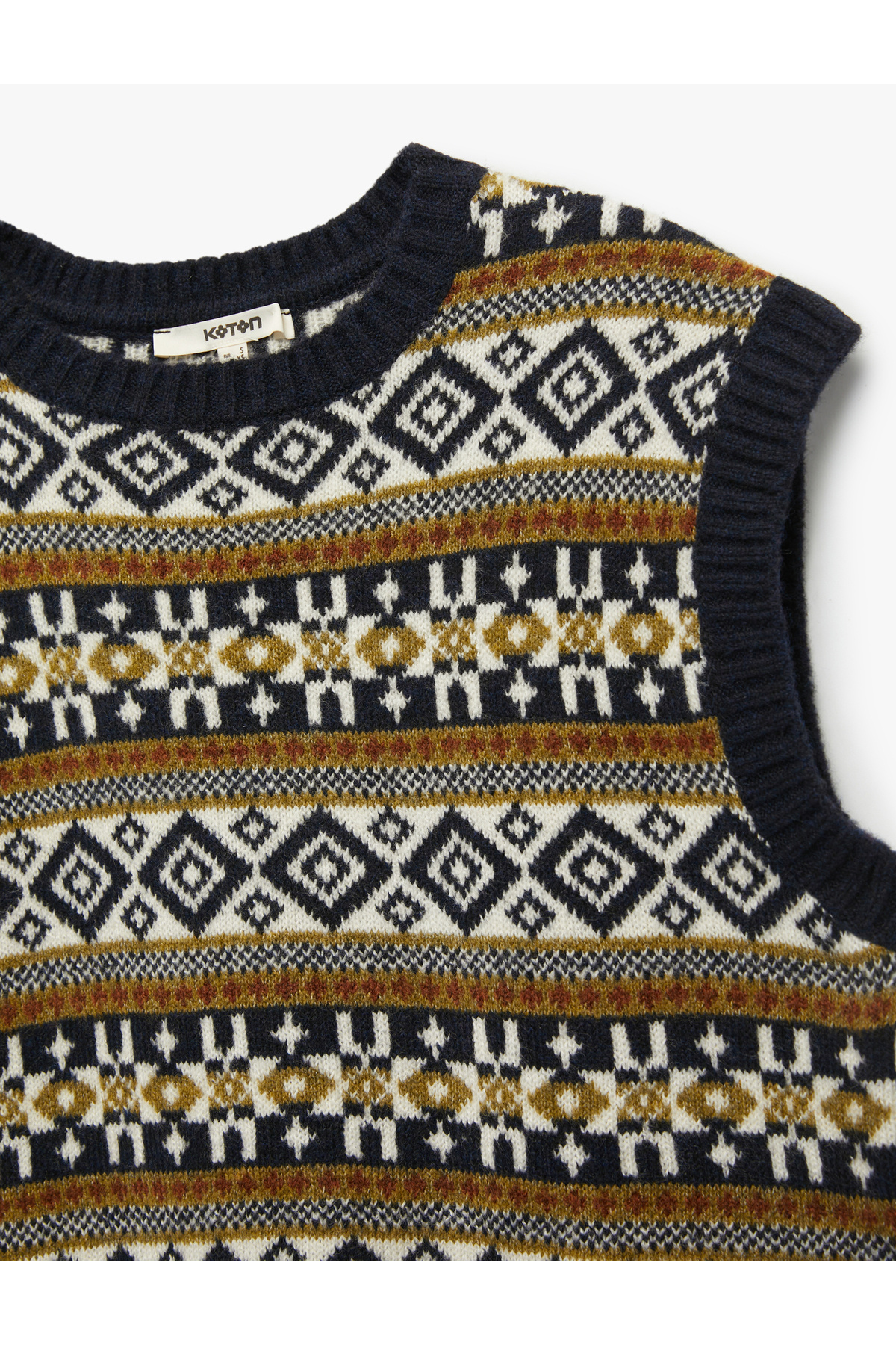 Etnik Desenli Kolsuz Bisiklet Yaka Triko Oversize Süveter Etnik Desenli Kolsuz Bisiklet Yaka Triko Oversize Süveter 6WAK20014HT XL