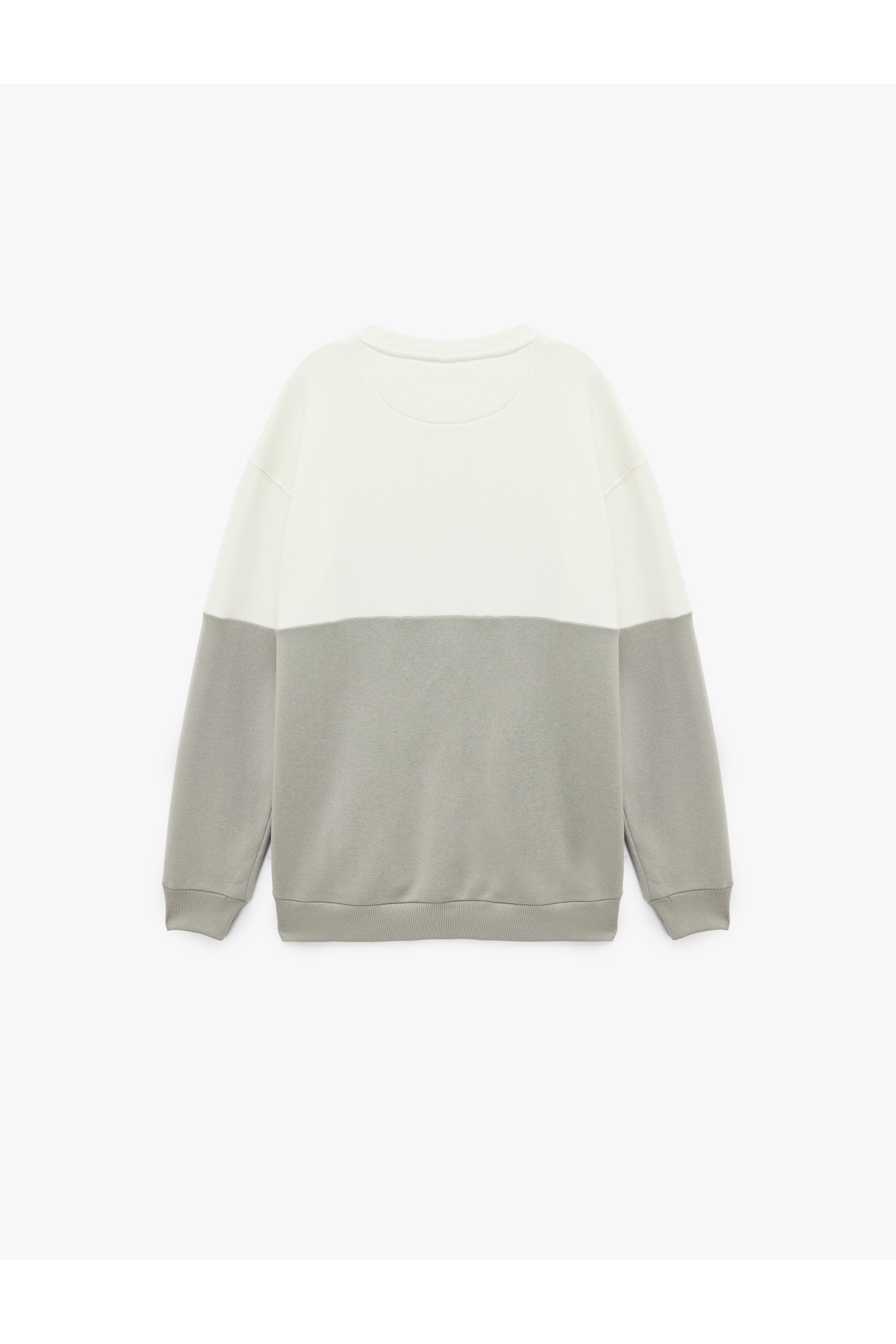 Oversize Uzun Kollu Renk Bloklu Baskı Detaylı Şardonlu Bisiklet Yaka Sweatshirt Oversize Uzun Kollu Renk Bloklu Baskı Detaylı Şardonlu Bisiklet Yaka Sweatshirt 6WAM70043MK 2XL