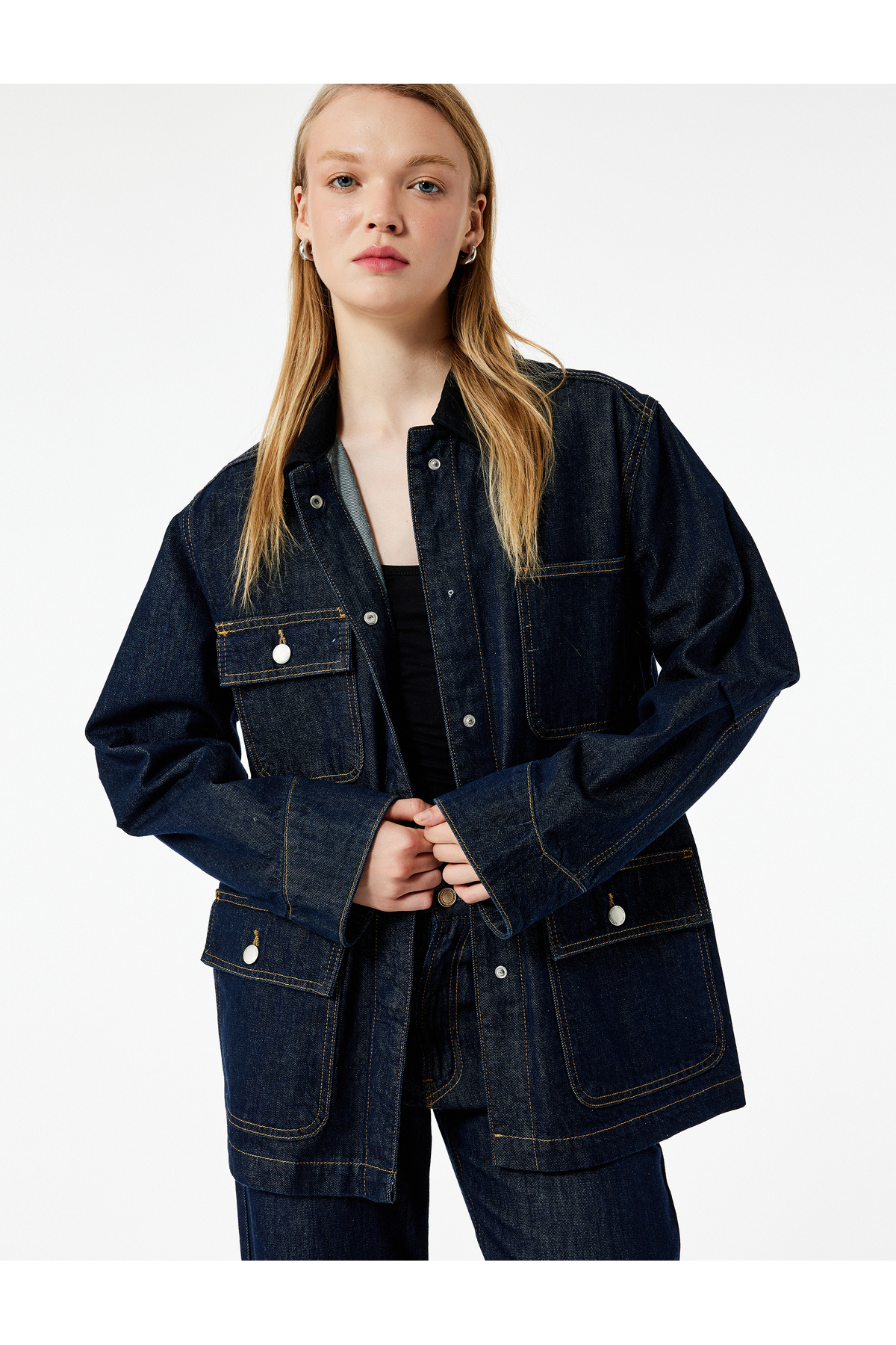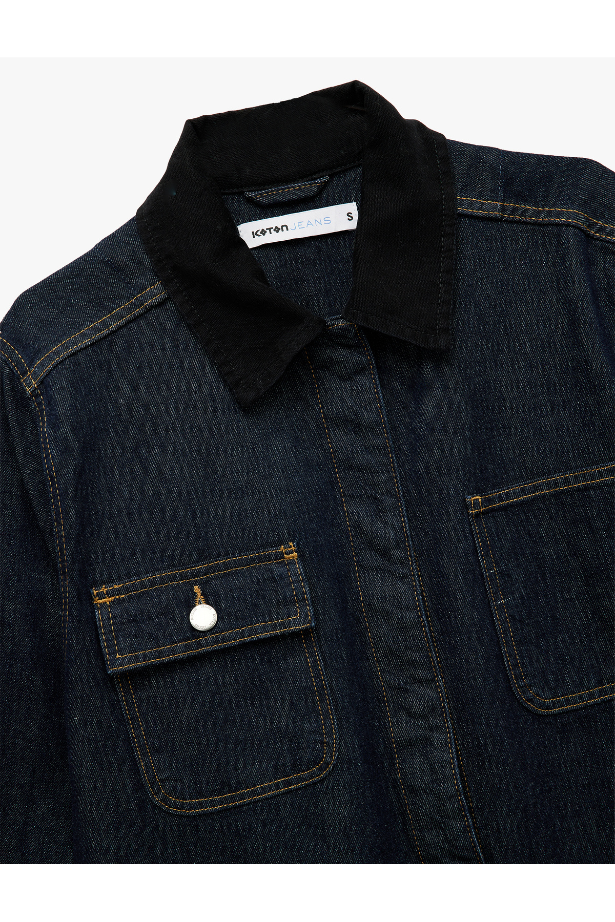 Uzun Kollu Cep Detaylı Gömlek Yaka Denim Ceket Uzun Kollu Cep Detaylı Gömlek Yaka Denim Ceket 6WAL50008MD L