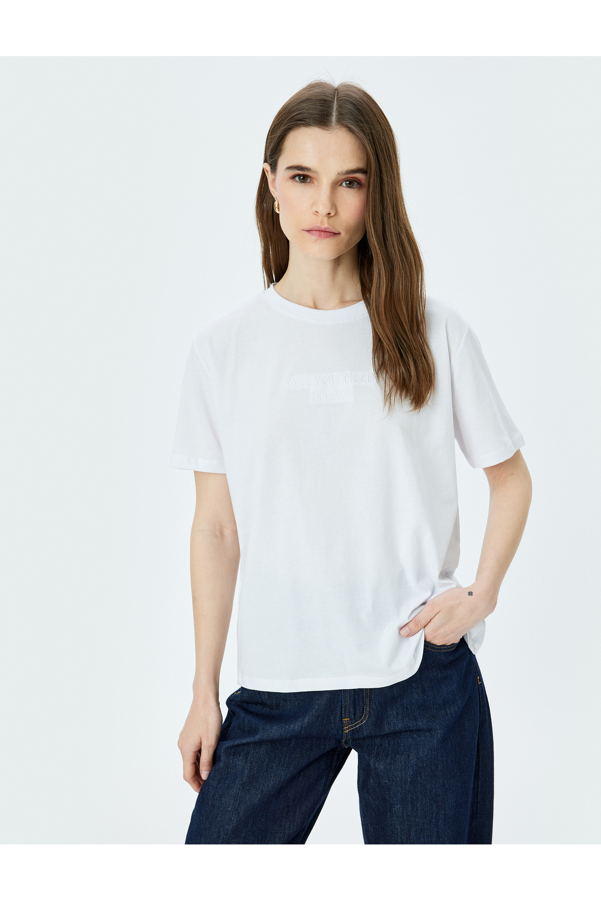 Pamuklu Slim Fit Kısa Kollu Bisiklet Yaka Kroşe Detaylı Tişört Pamuklu Slim Fit Kısa Kollu Bisiklet Yaka Kroşe Detaylı Tişört 6WAK50151EK 3XL