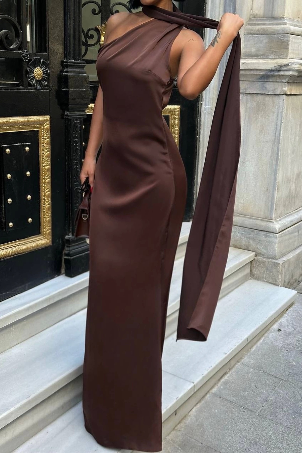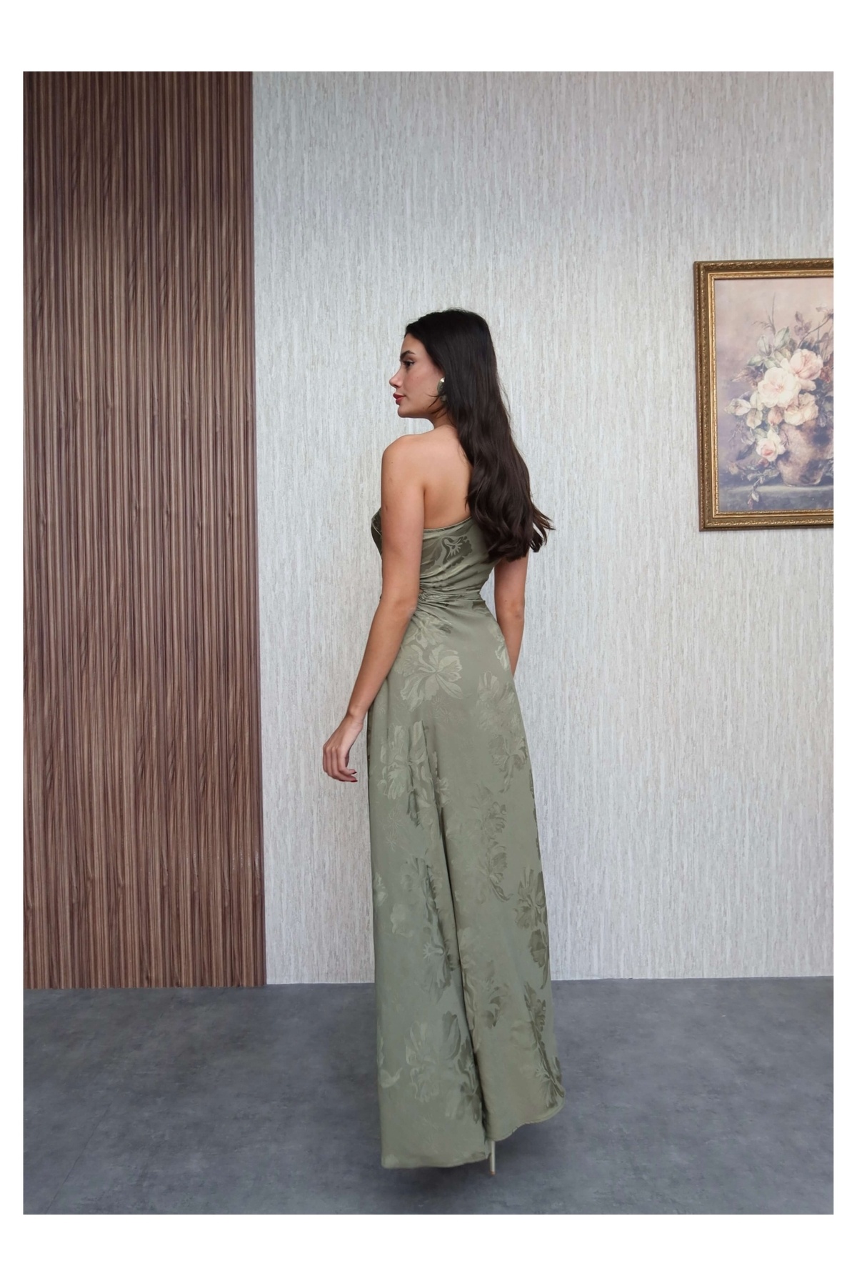 Haki Desenli Tek Kol Elbise Haki Desenli Tek Kol Elbise EH-4704 L