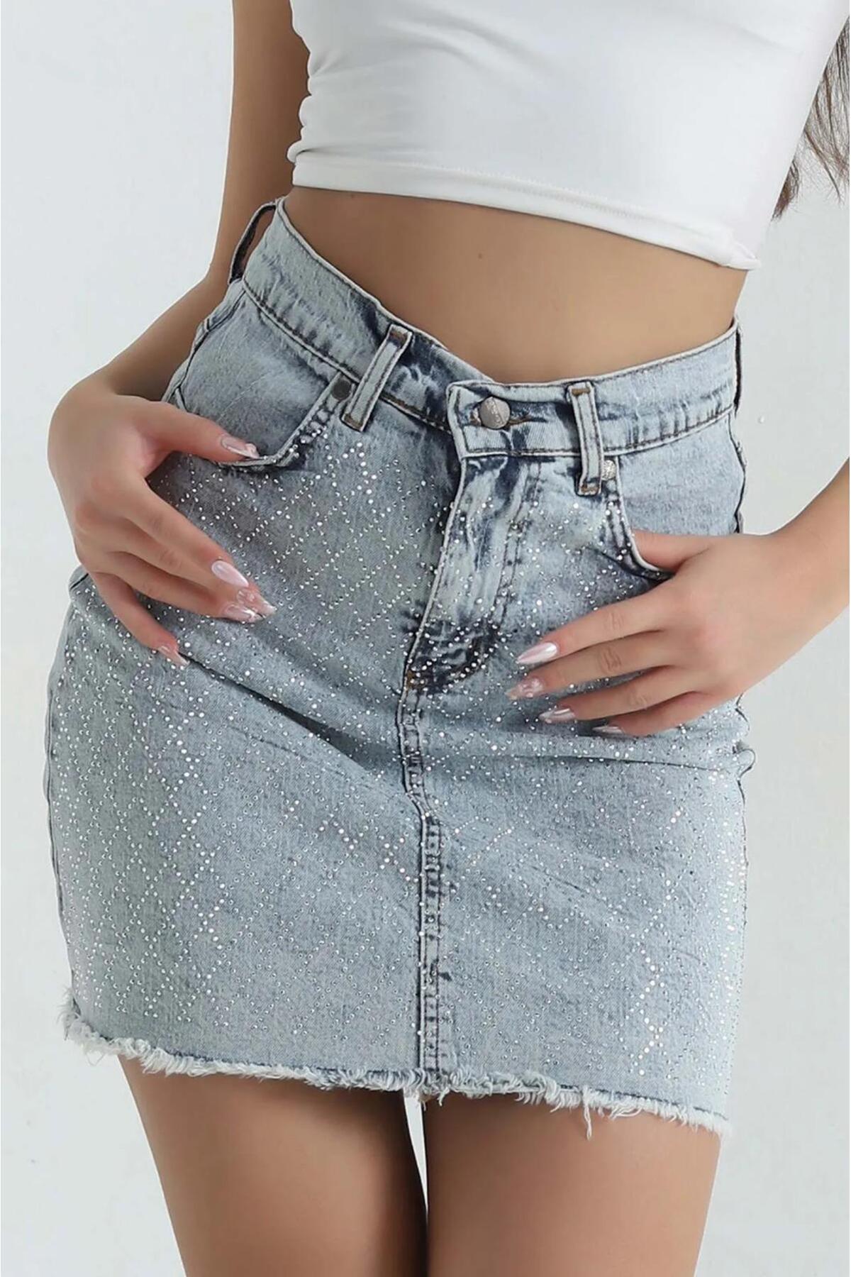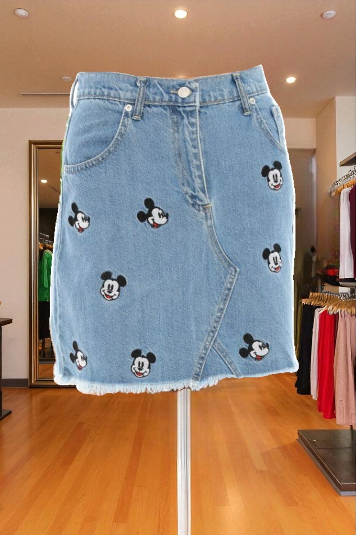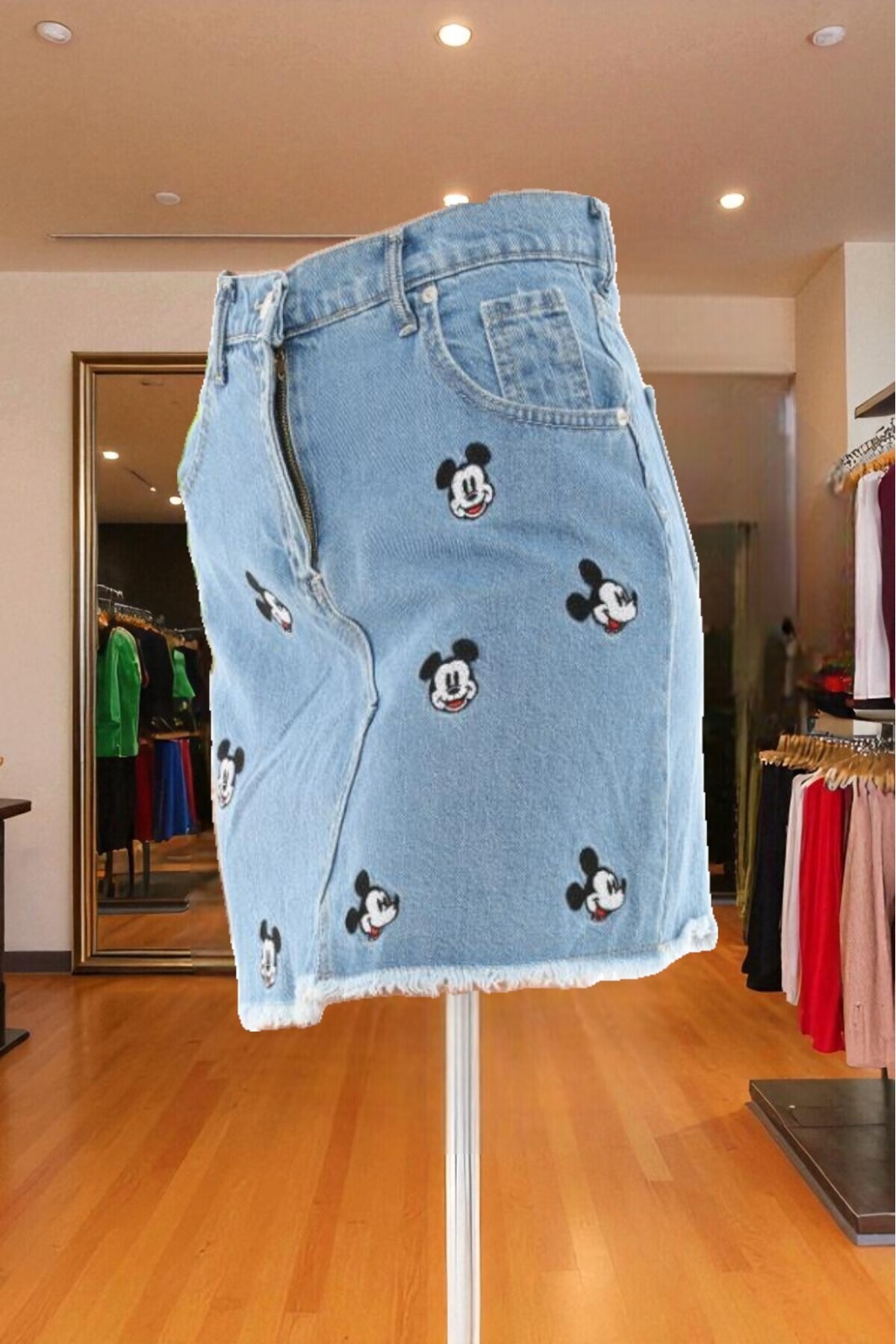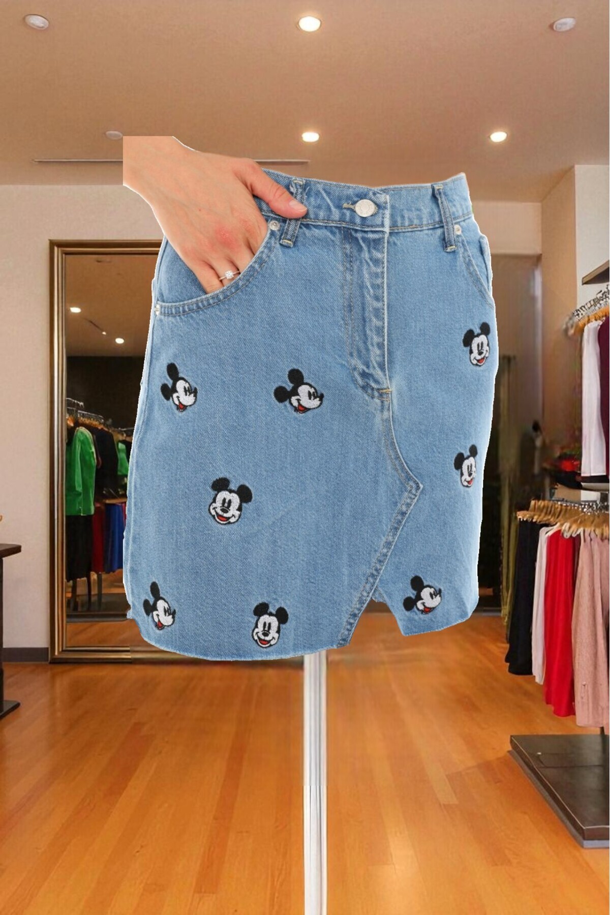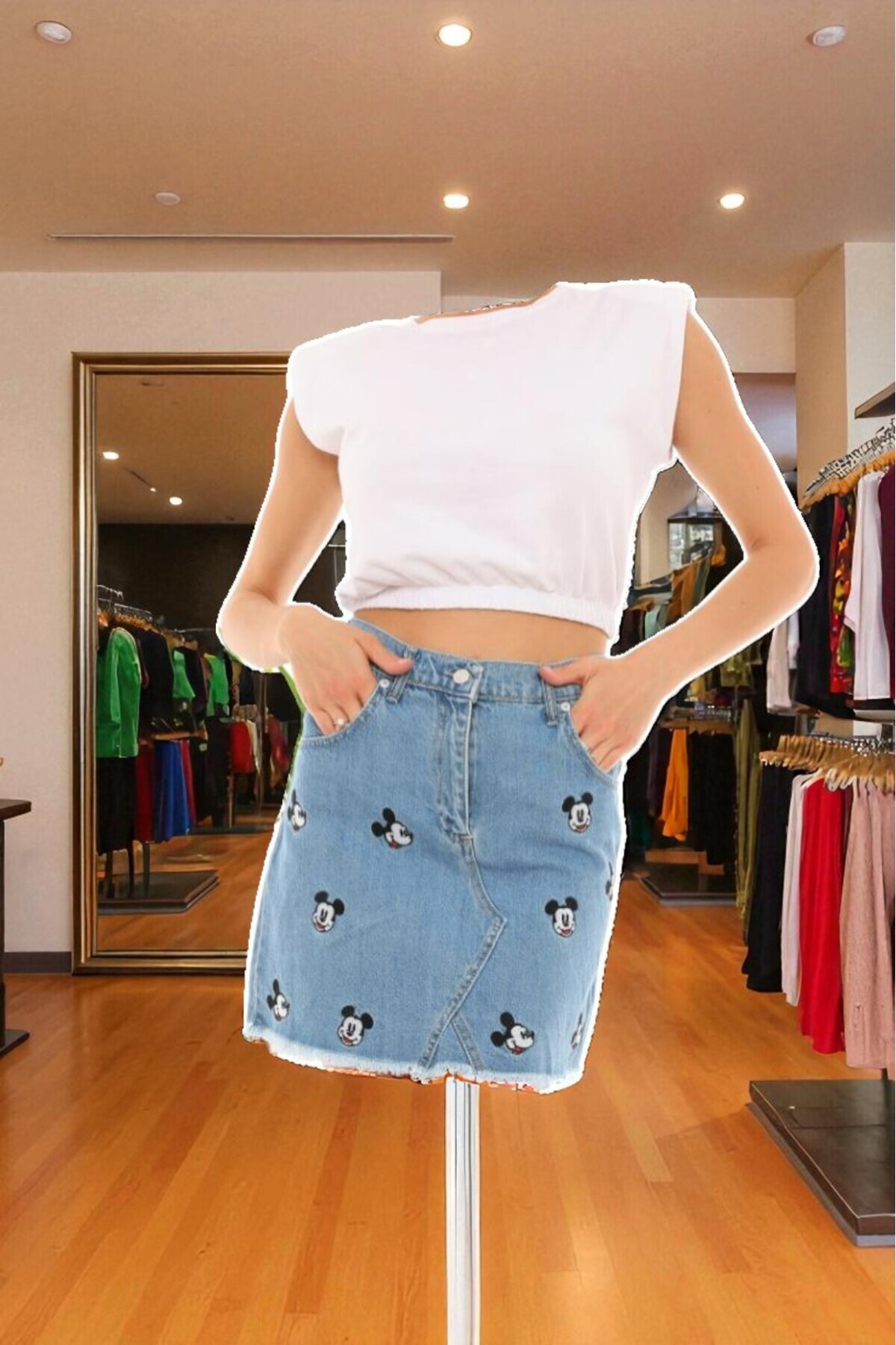 Mickey Mouse Nakışlı Mavi Kot Mini Etek – Yüksek Bel Mickey Mouse Nakışlı Mavi Kot Mini Etek – Yüksek Bel 972629 S