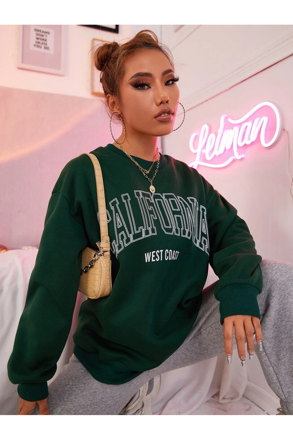 Kırmızı Unisex Erkek/Kadın California Renkli Özel Baskılı Oversize Bisiklet Yaka Kırmızı Unisex Erkek/Kadın California Renkli Özel Baskılı Oversize Bisiklet Yaka CALIFOR-StartMore- XL