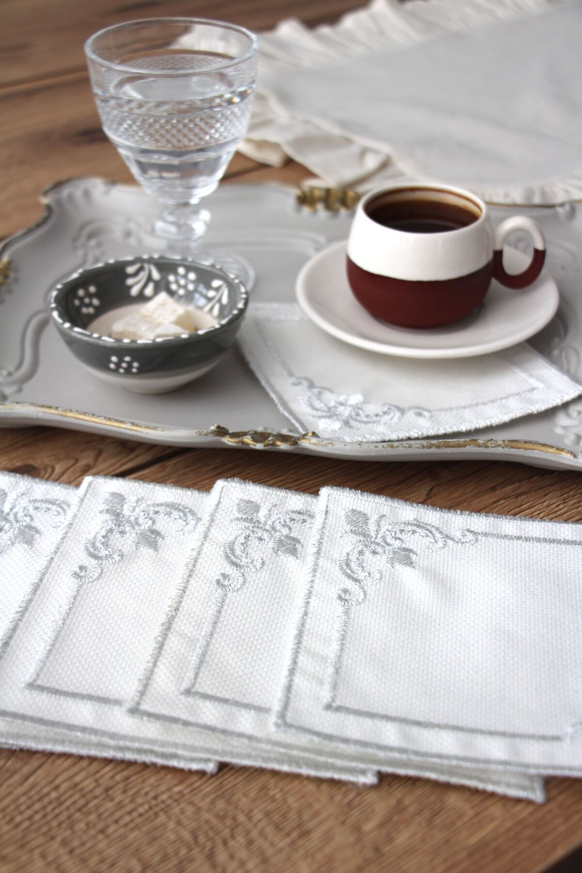 Köşeli 6'lı Kokteyl Kahve Sunum Peçetesi Nakış İşlemeli Gardenya Sunumluk Köşeli 6'lı Kokteyl Kahve Sunum Peçetesi Nakış İşlemeli Gardenya Sunumluk 6010-Grdnya 15 x 15