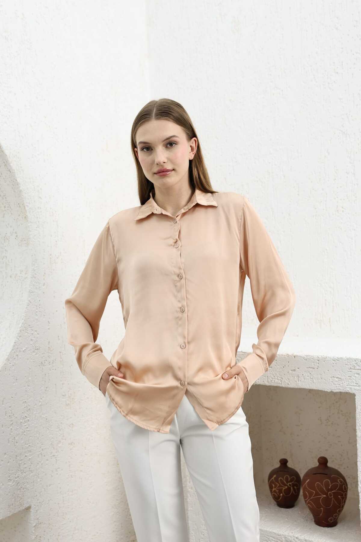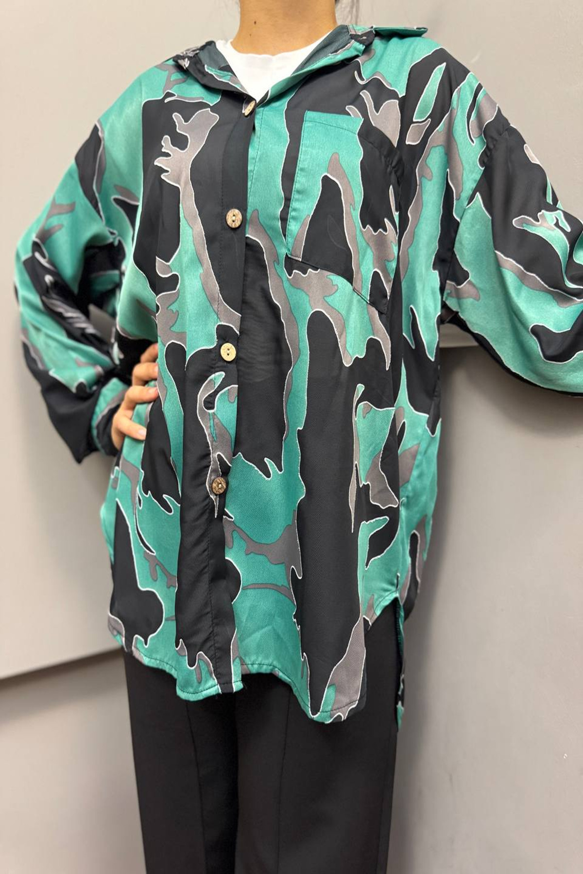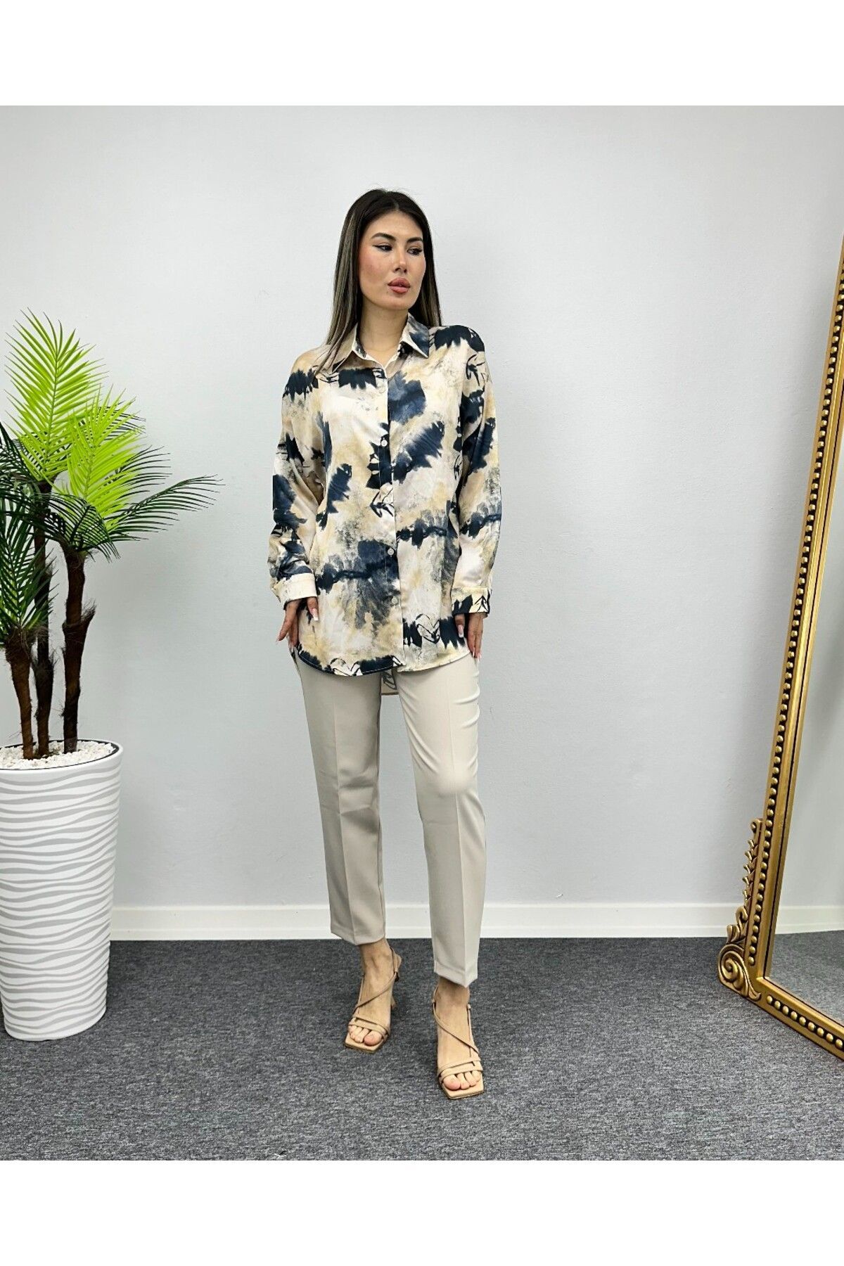 Kadın Oversize Krep Jakarlı Desenli Gömlek Kadın Oversize Krep Jakarlı Desenli Gömlek VıoShıne0311 Standart