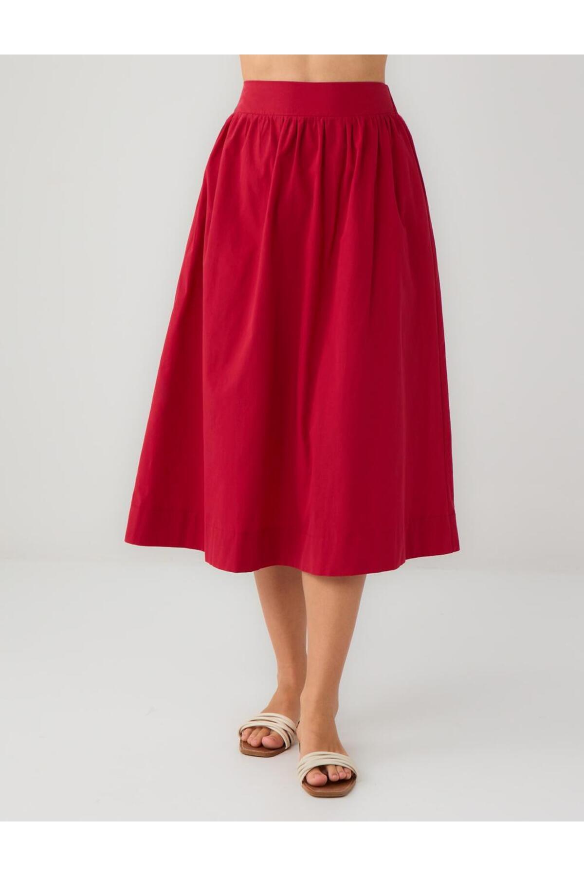 Kırmızı %100 Pamuk Normal Bel Dokuma Midi Etek Kırmızı %100 Pamuk Normal Bel Dokuma Midi Etek 5WW074814 L