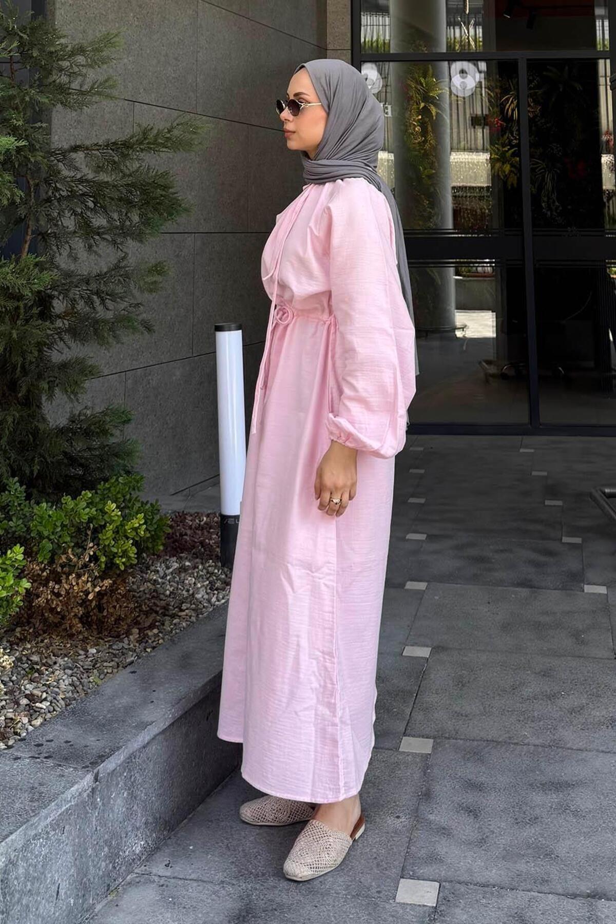 Balon Kol Bağlamalı Tesettür Elbise Şeker Pembesi Balon Kol Bağlamalı Tesettür Elbise Şeker Pembesi ZM2238 L