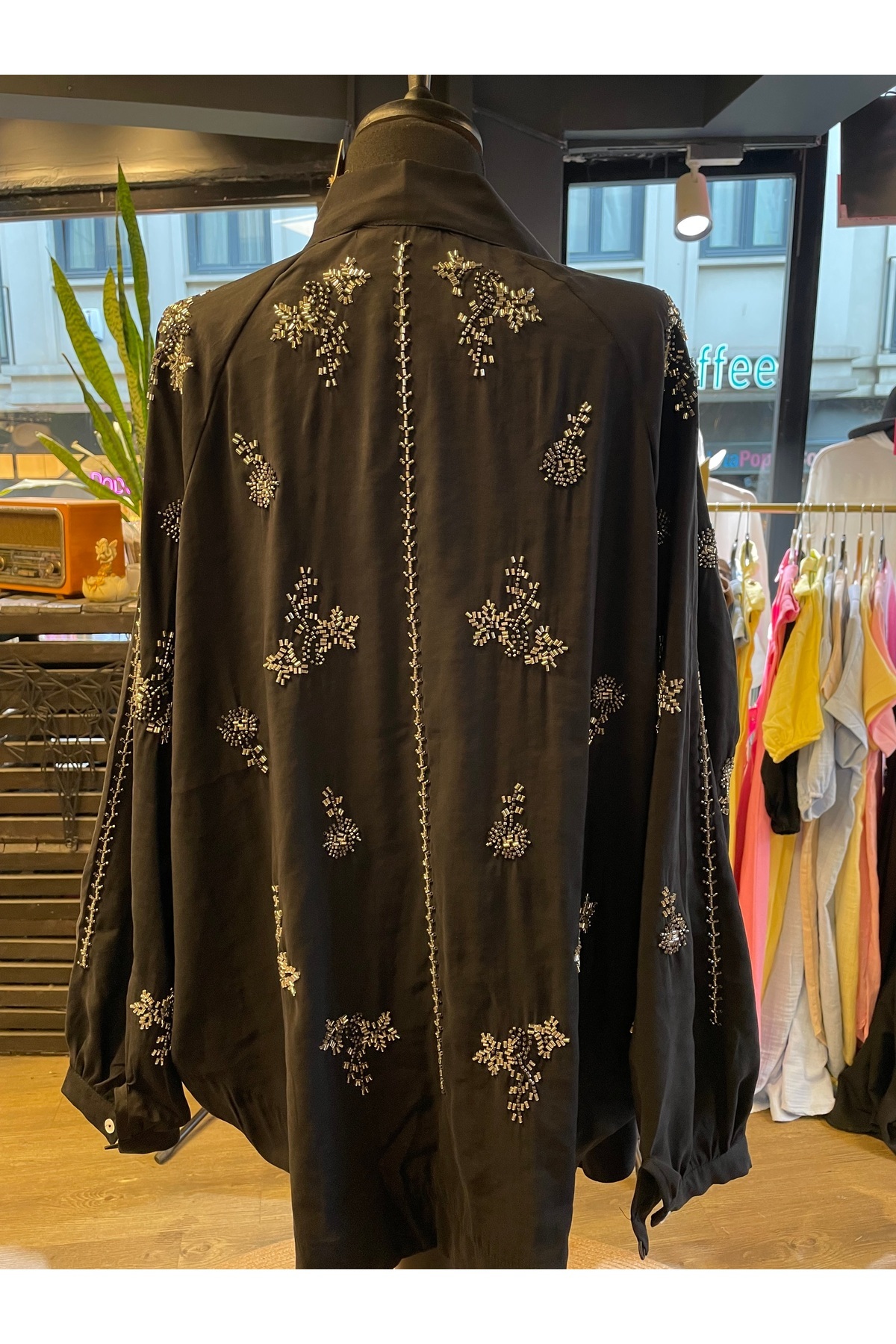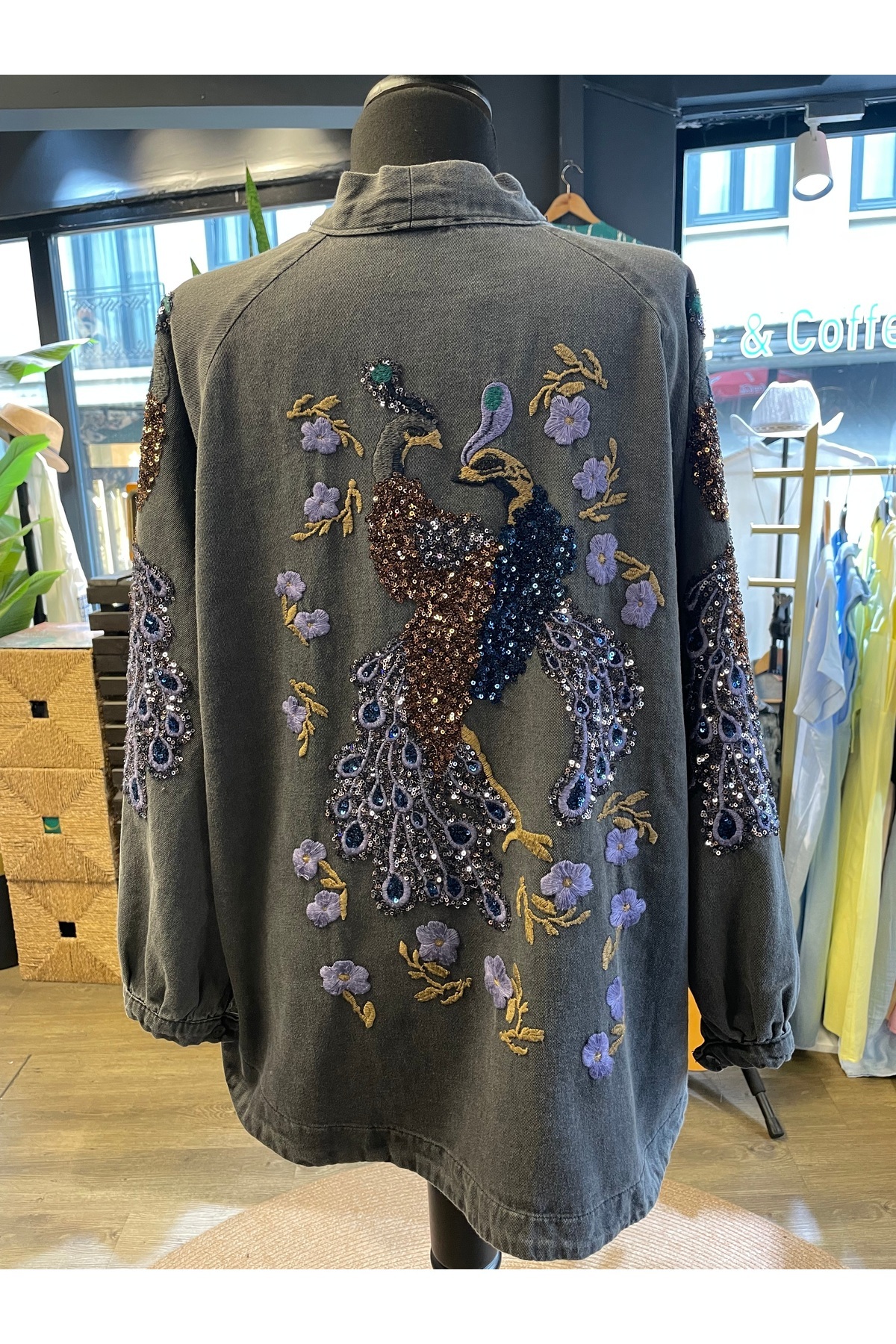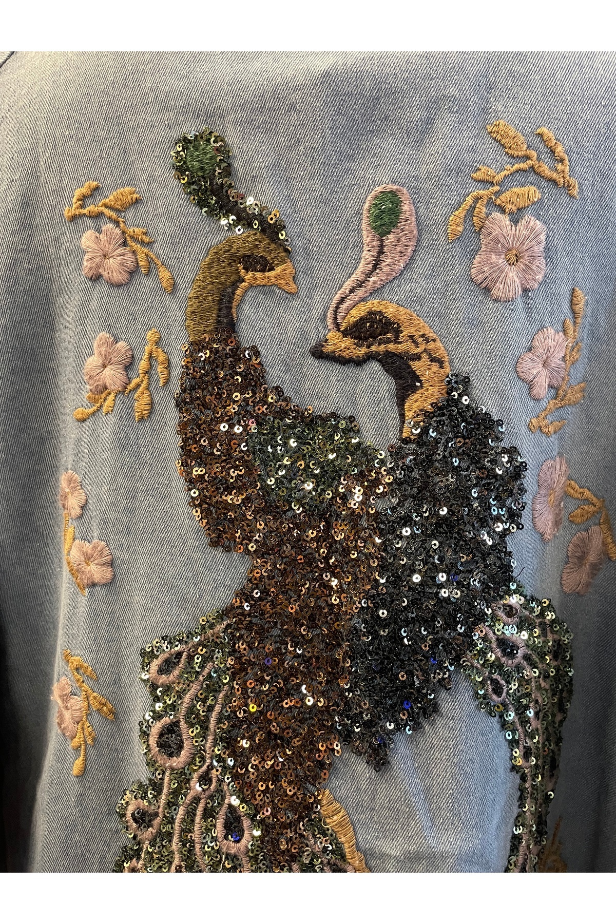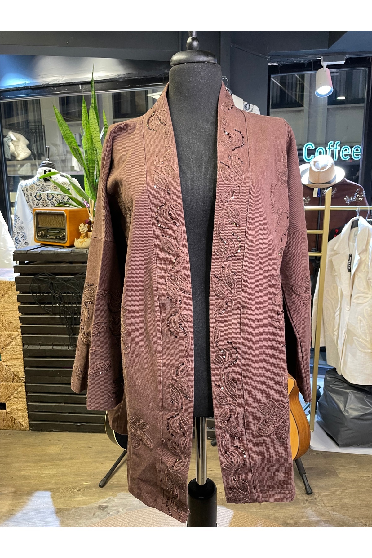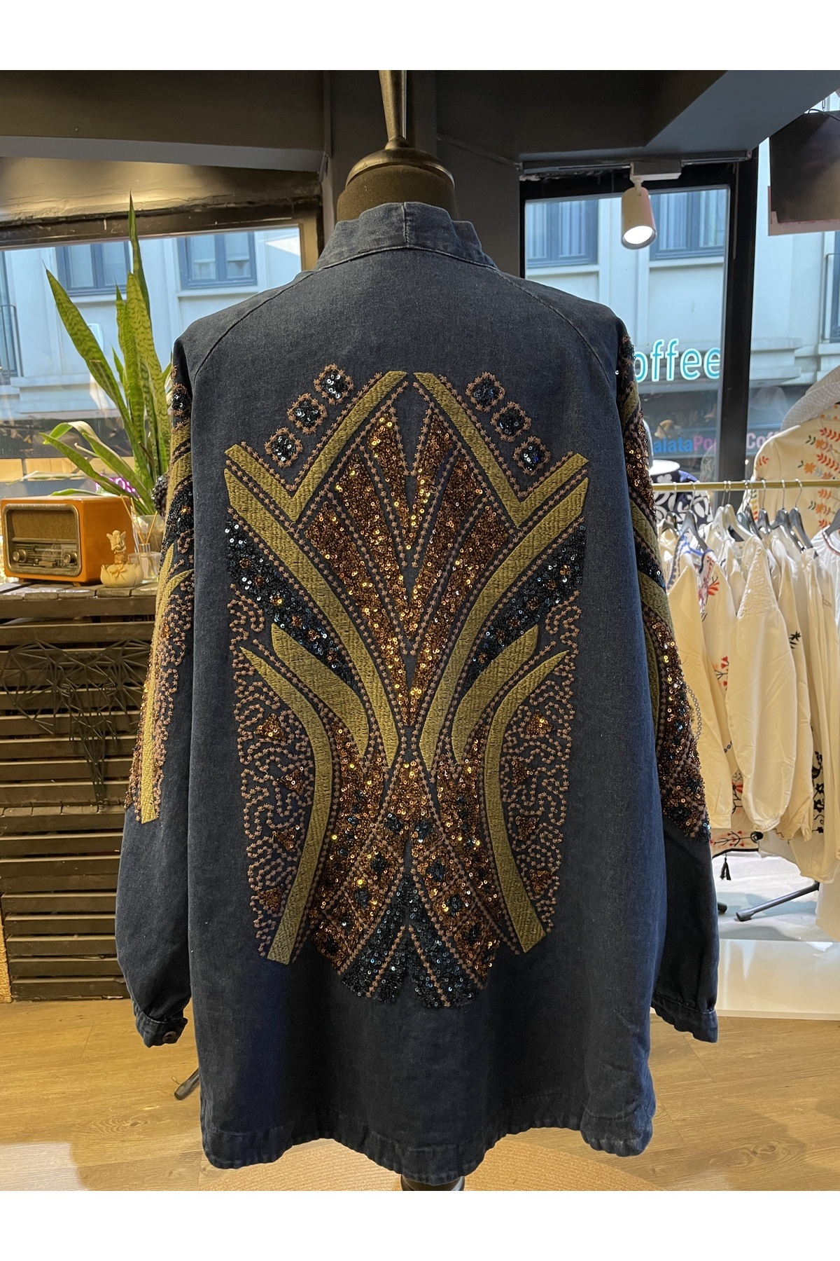 Kadın Kuşlu Taş İşlemeli Pamuk Nakışlı Kot Kimono Kadın Kuşlu Taş İşlemeli Pamuk Nakışlı Kot Kimono galata55 Standart