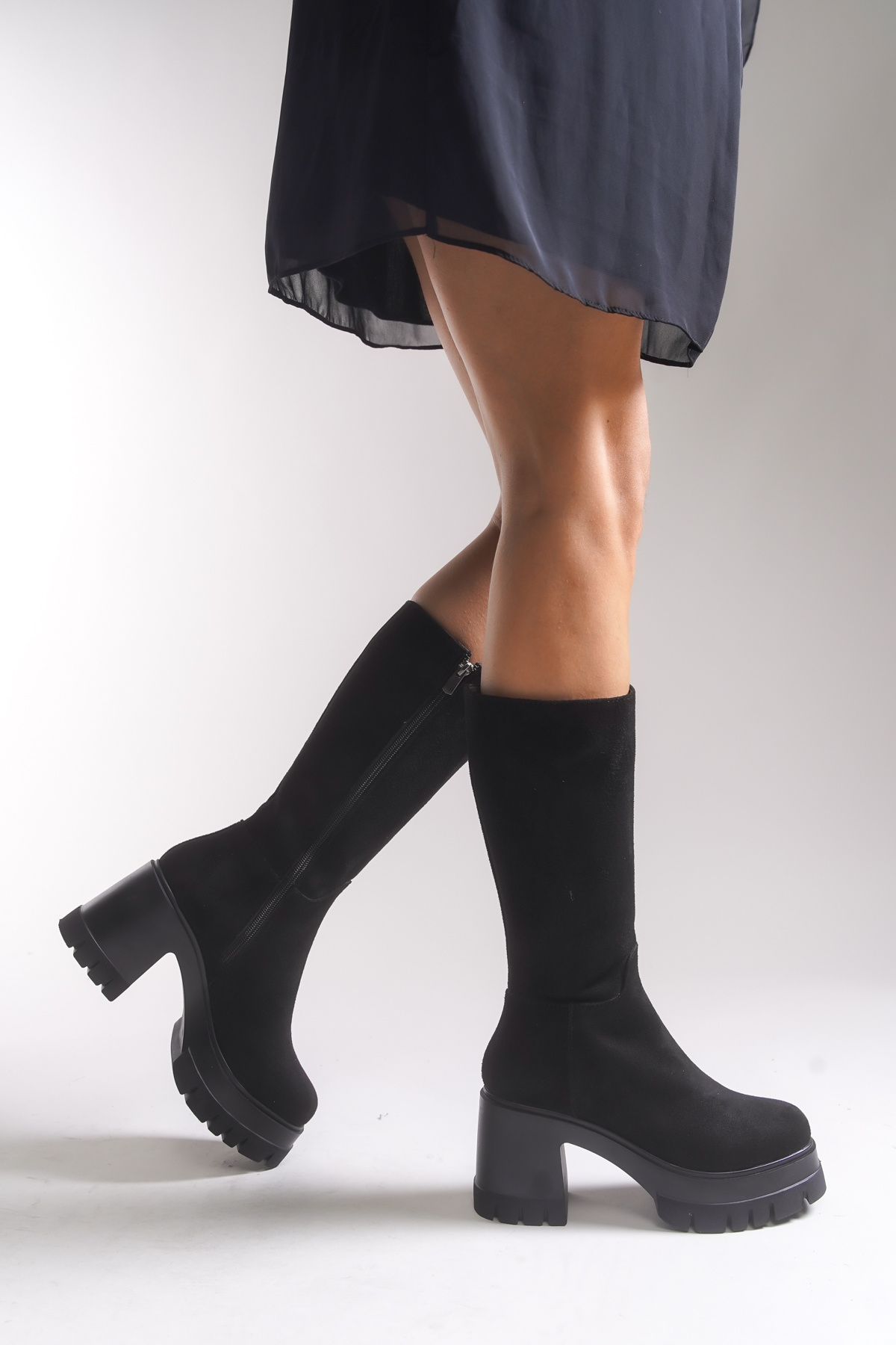 Lvamel Kadın Diz Altı Topuklu Çizme 0012501 Siyah Süet Lvamel Kadın Diz Altı Topuklu Çizme 0012501 Siyah Süet LNRCNKETL501 40