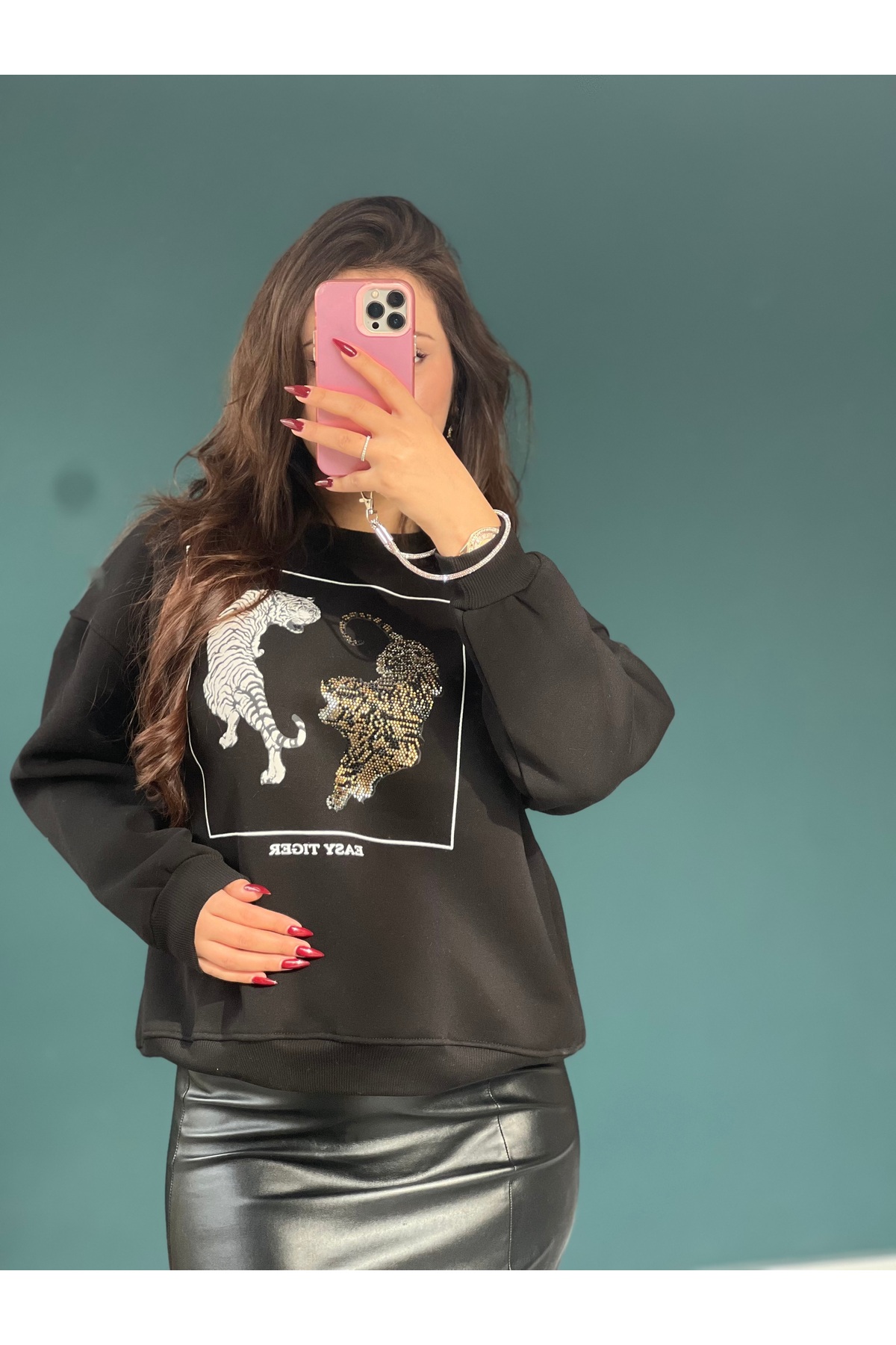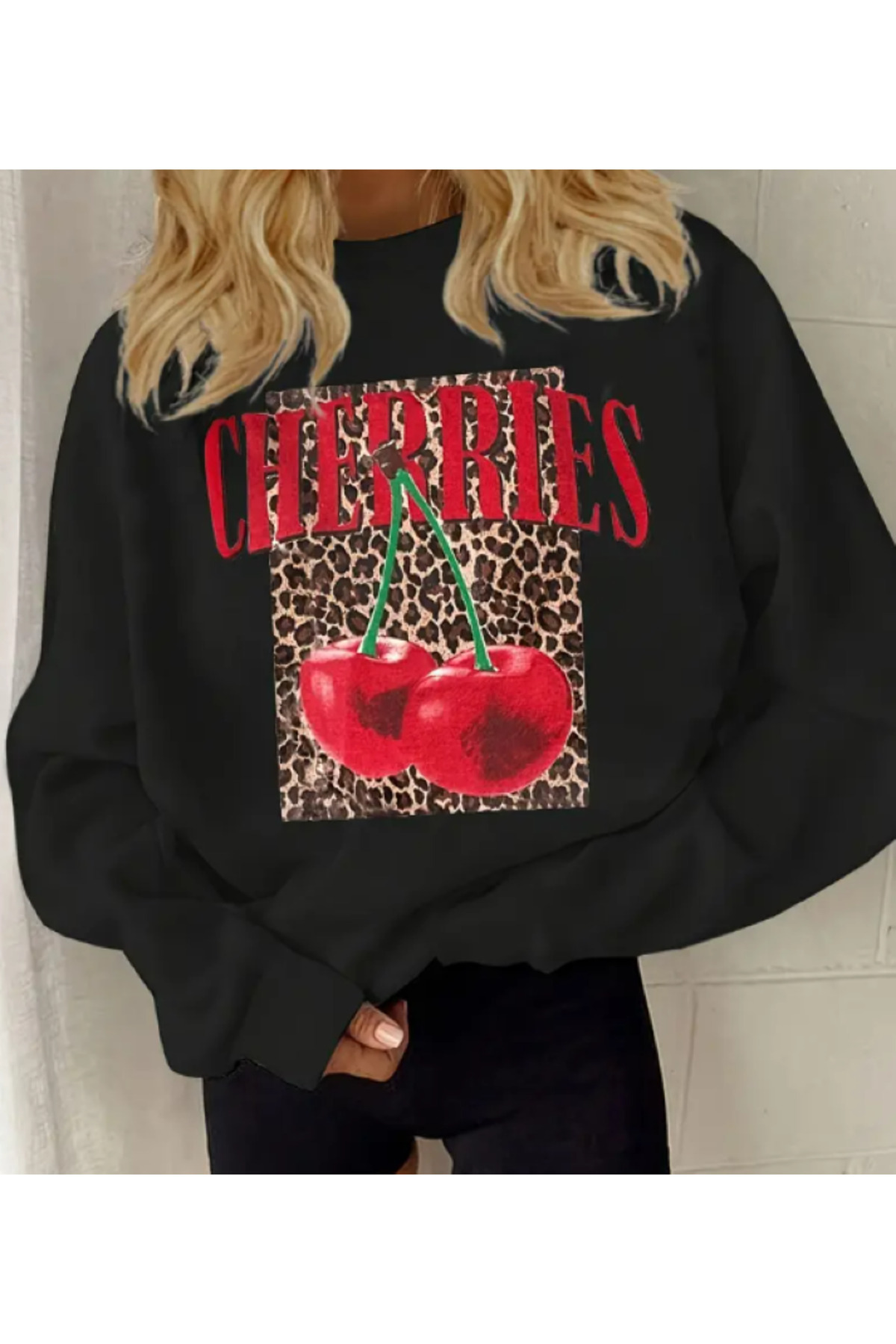 Siyah Kadın Oversize Leopar Desenli Cherry Siyah Kadın Oversize Leopar Desenli Cherry Leopar Desenli Cherry Sweatshirt XL