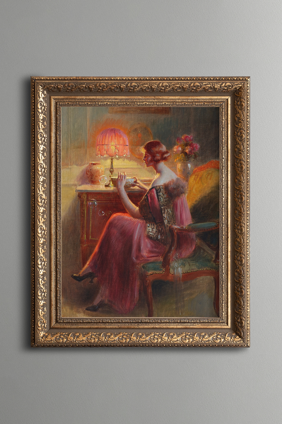 Baloncuk Üfleyen Kadın - Vintage Desenli Çerçeve Baloncuk Üfleyen Kadın - Vintage Desenli Çerçeve art00370 50 x 70