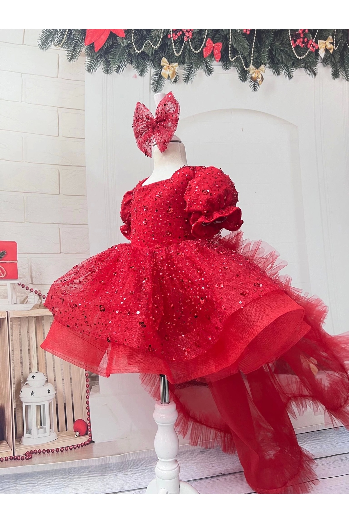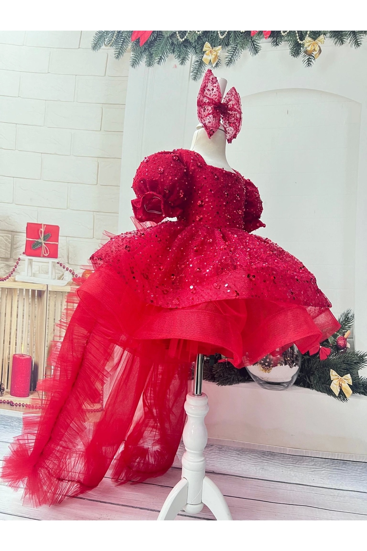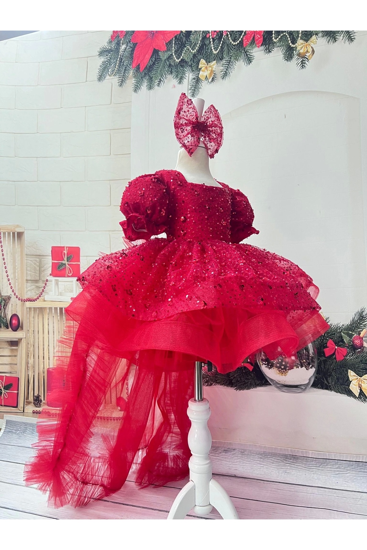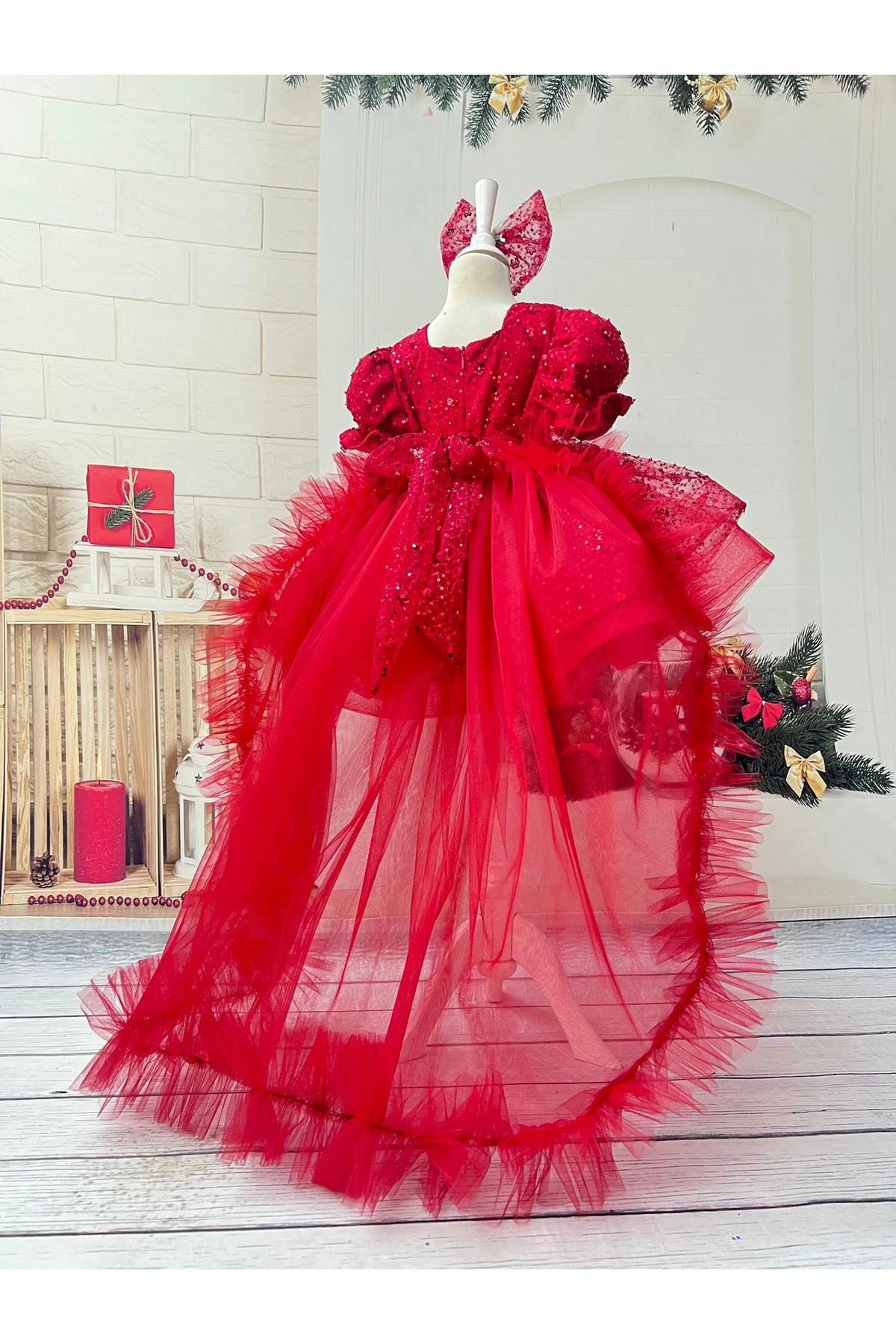 Kırmızı Taşlı Kare Yakalı Kuyruklu Kız çocuk Elbisesi Abiye Kırmızı Taşlı Kare Yakalı Kuyruklu Kız çocuk Elbisesi Abiye P3357S2790 7 Yaş
