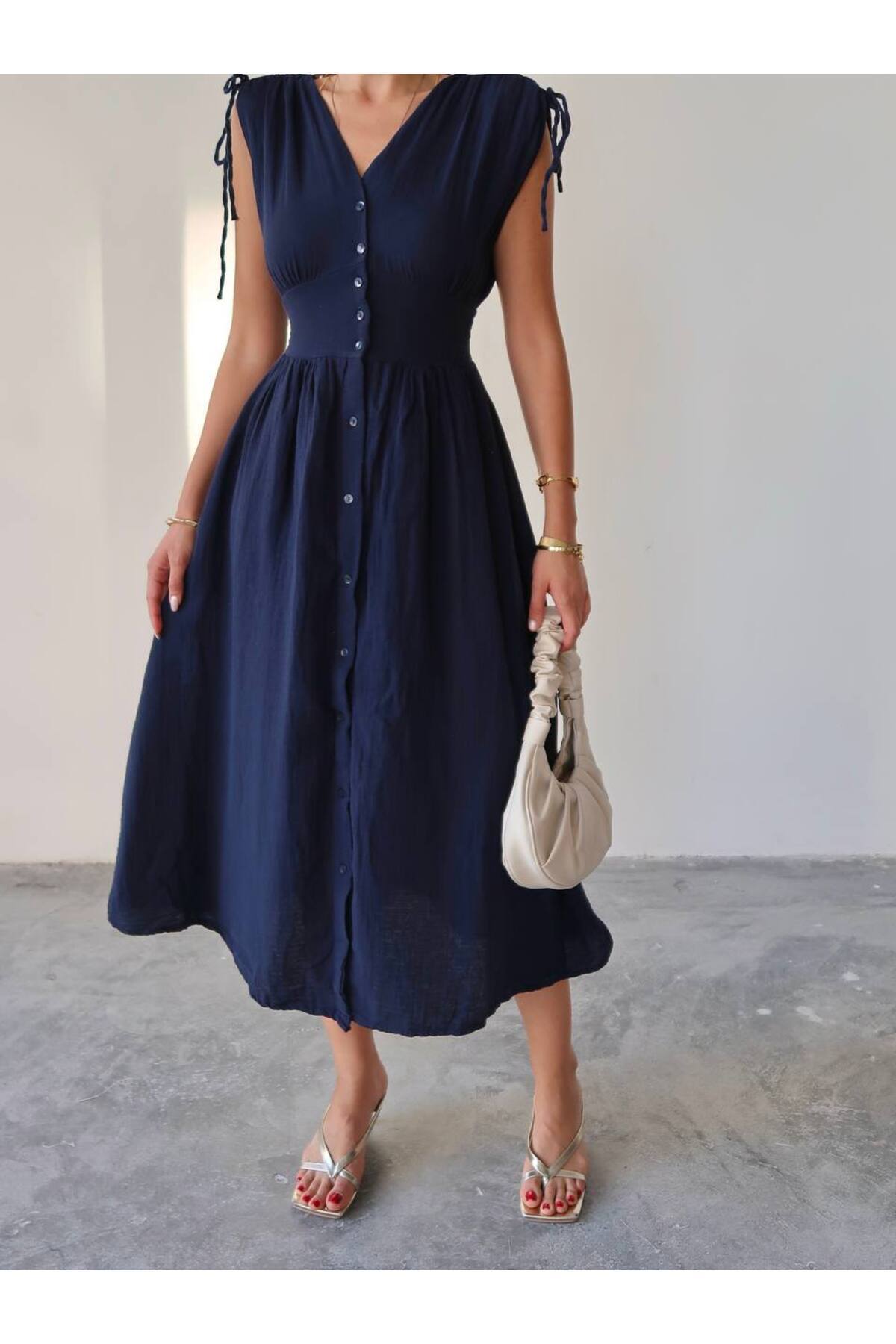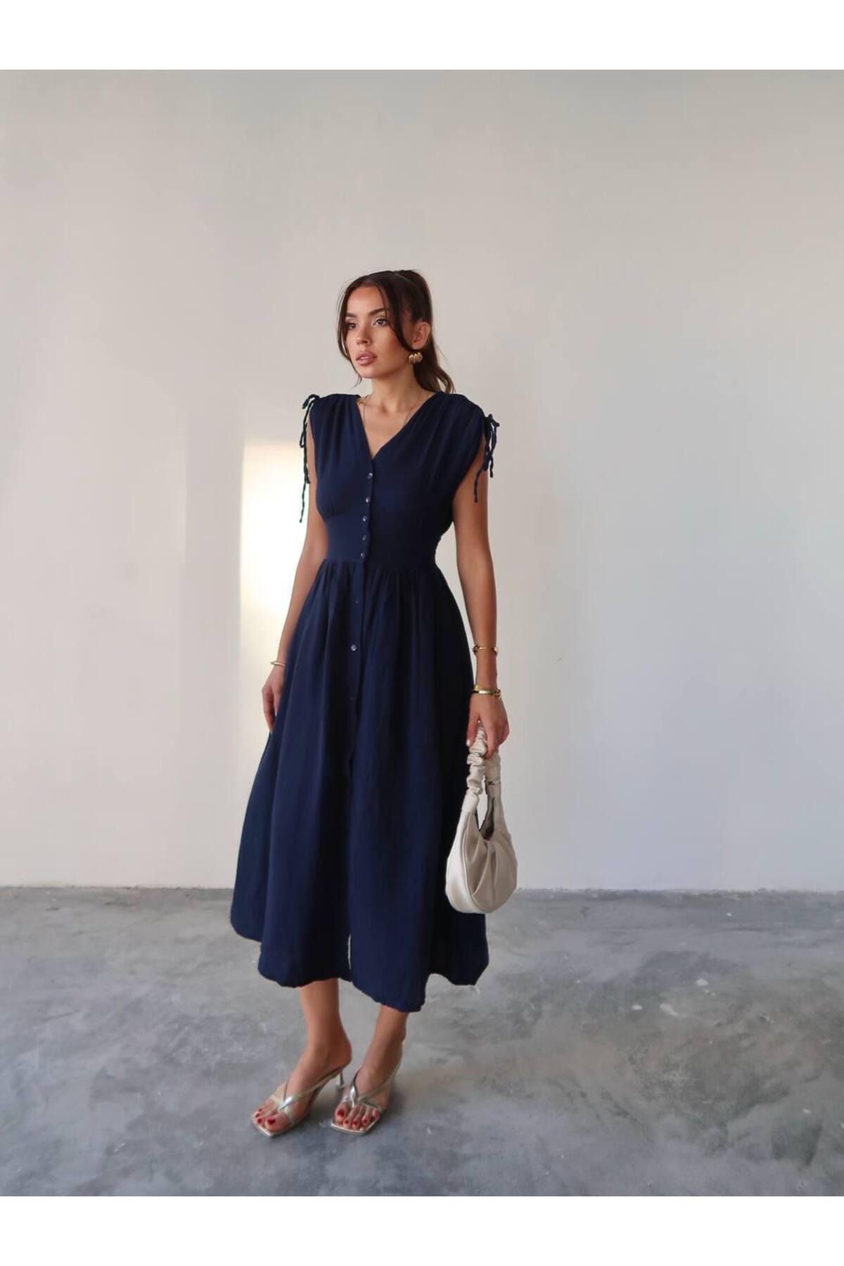 Bağcık Detaylı Düğmeli Elbise Lacivert Bağcık Detaylı Düğmeli Elbise Lacivert 25SWRR01 L