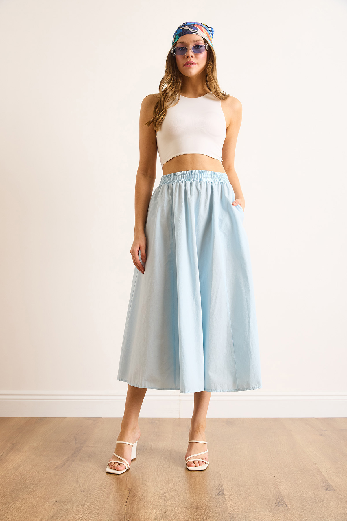 Kadın Bebe Mavi Beli Lastikli Paraşüt Çan Etek ETK-19000280 Kadın Bebe Mavi Beli Lastikli Paraşüt Çan Etek ETK-19000280 L