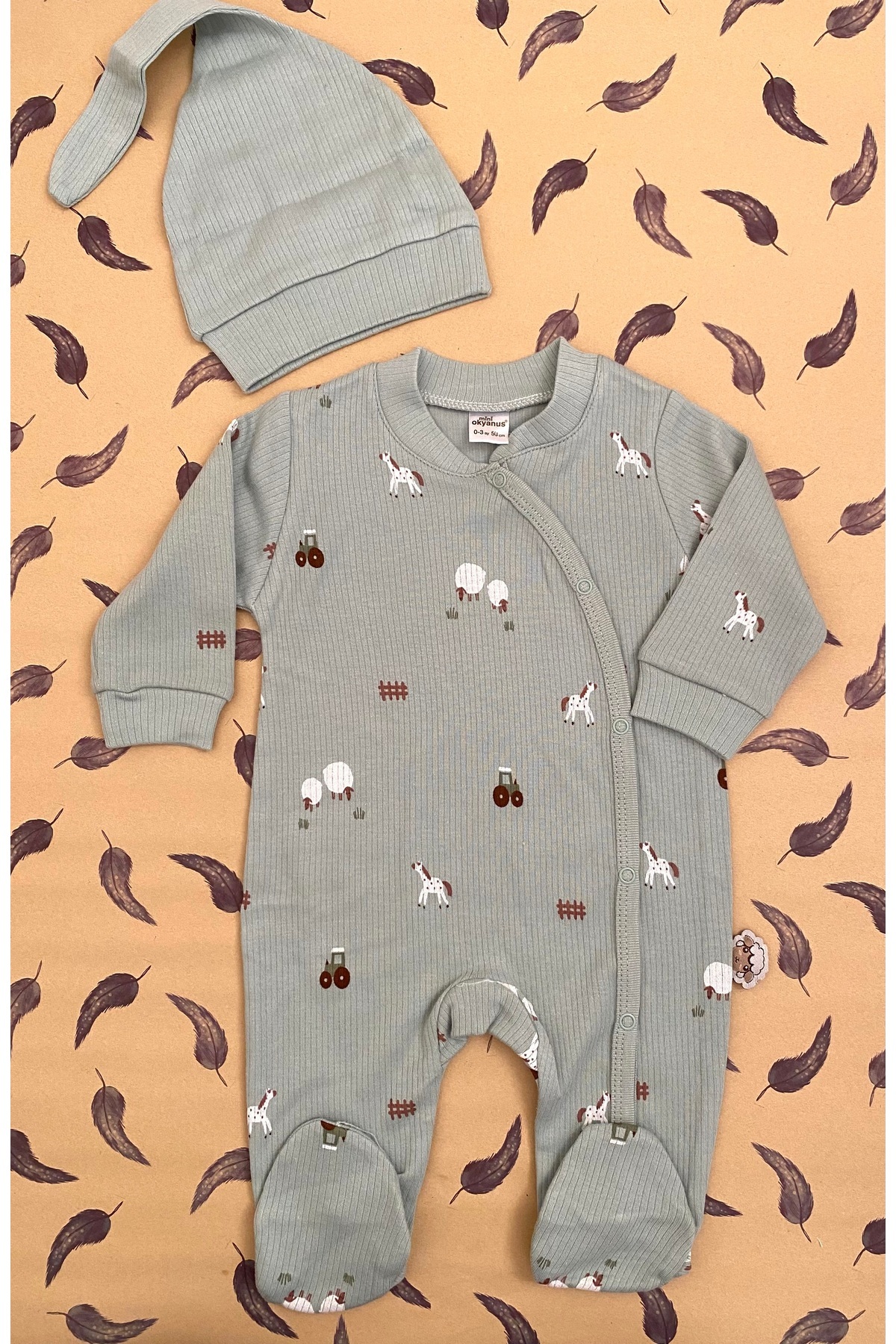 Mini Okyanus Erkek Bebek Çiftlik Desenli Şapkalı Pamuklu Tulum - Yeşil (0-3 Ay / 3-6 Ay) Mini Okyanus Erkek Bebek Çiftlik Desenli Şapkalı Pamuklu Tulum - Yeşil (0-3 Ay / 3-6 Ay) MO-TULUM-CIFTLİK-YESIL 3-6 AY